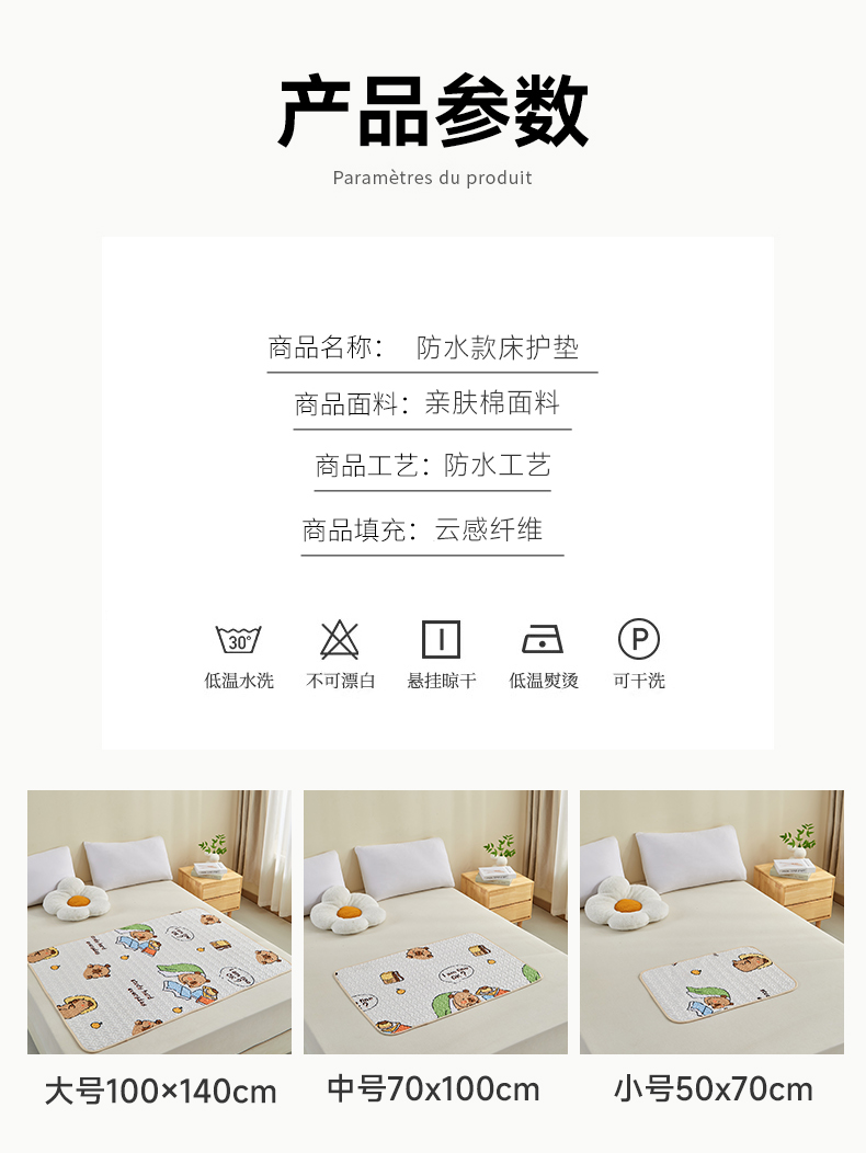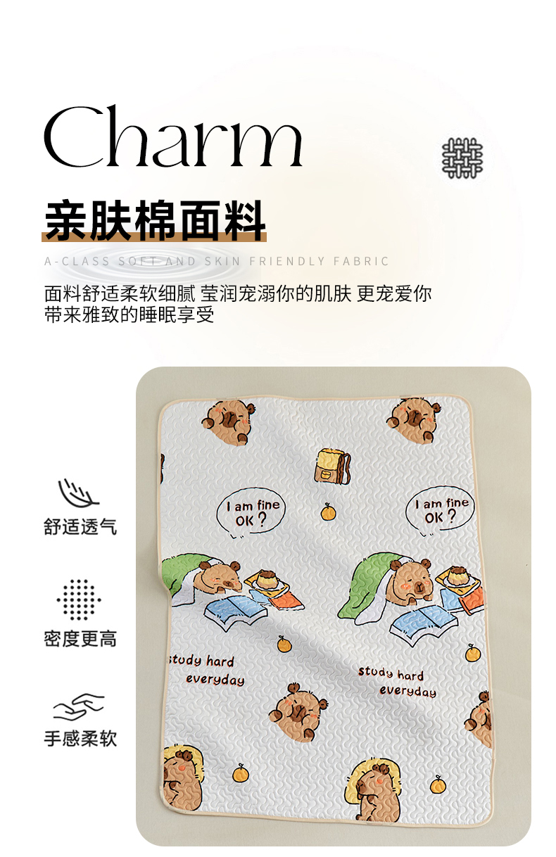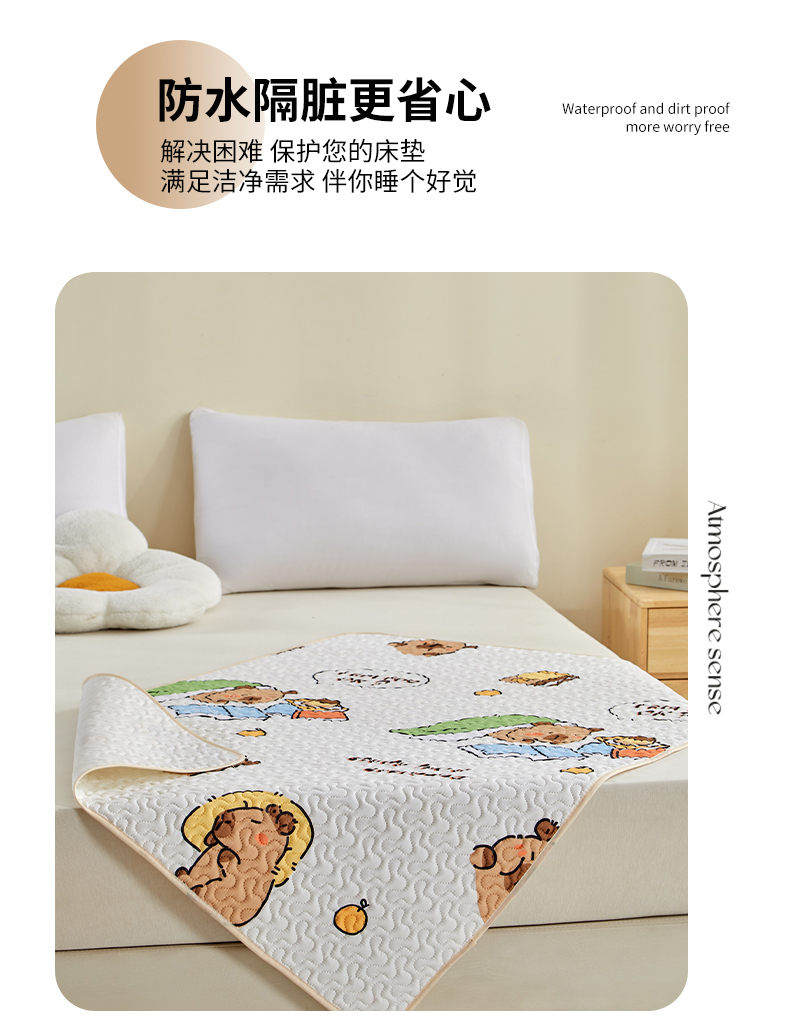 商品名称:芙绣家纺 2025新款亲肤棉隔尿垫婴儿童夏季防水透气可水洗大尺寸宝宝隔夜床单姨妈经期床垫 卡皮巴拉