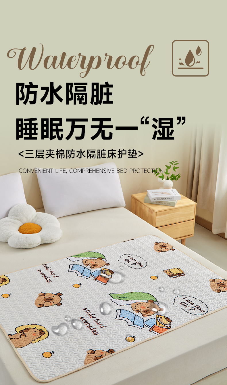 芙绣家纺 2025新款亲肤棉隔尿垫婴儿童夏季防水透气可水洗大尺寸宝宝隔夜床单姨妈经期床垫 卡皮巴拉