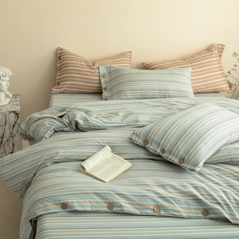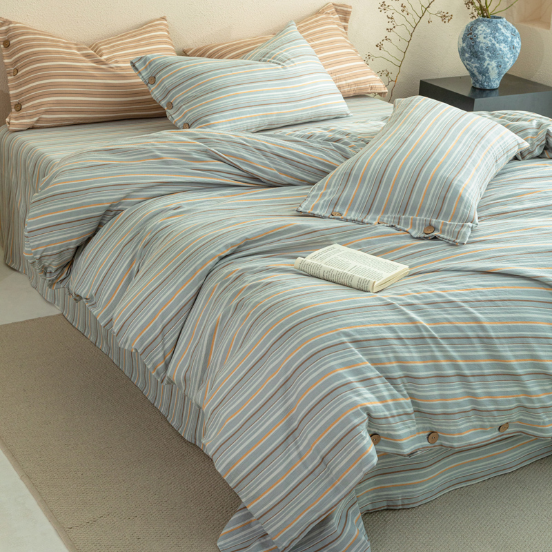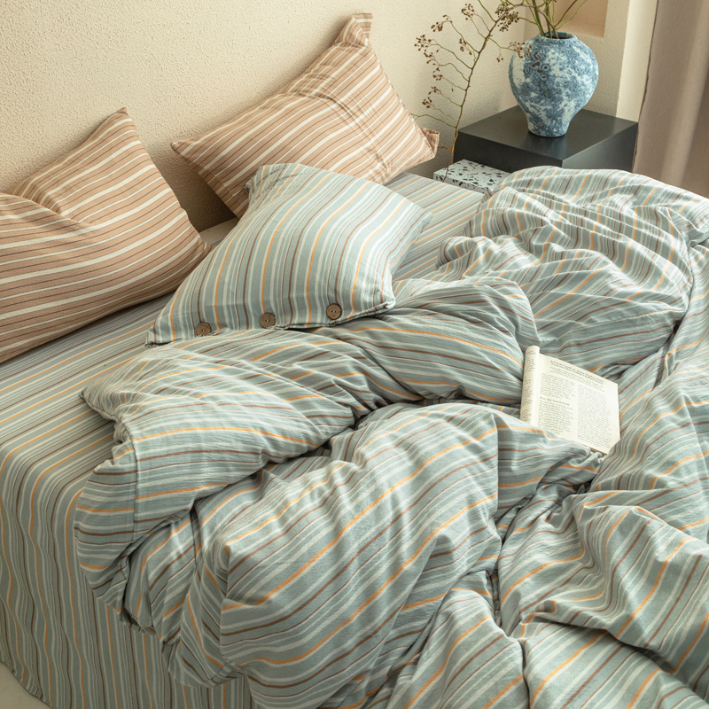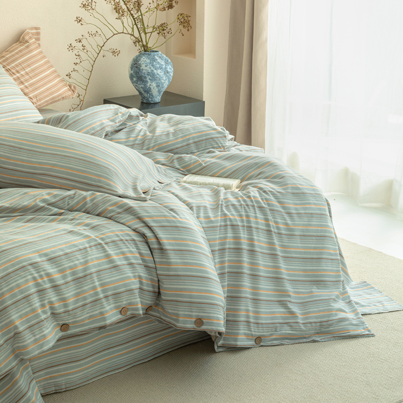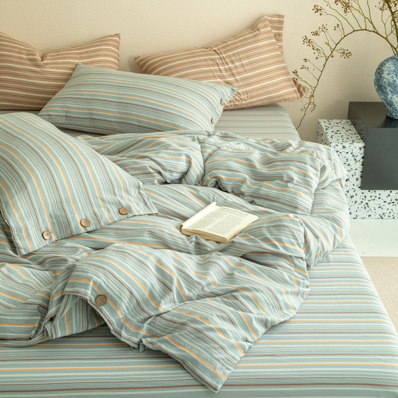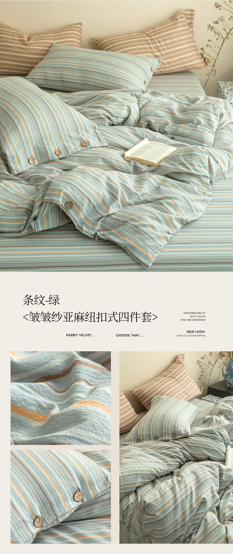 当前位置: 91家纺网 > 商品网购 > 床品套件 > 四件套 > 化纤活性四件套 > 库里梦家纺 2025新款皱皱纱亚麻纽扣式四件套 条纹-绿