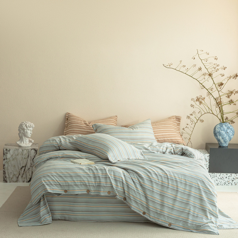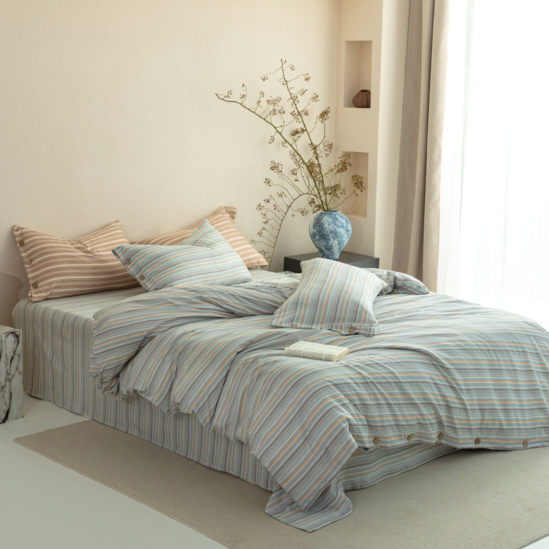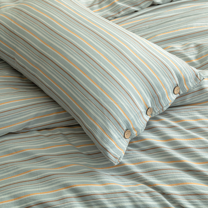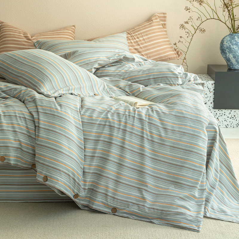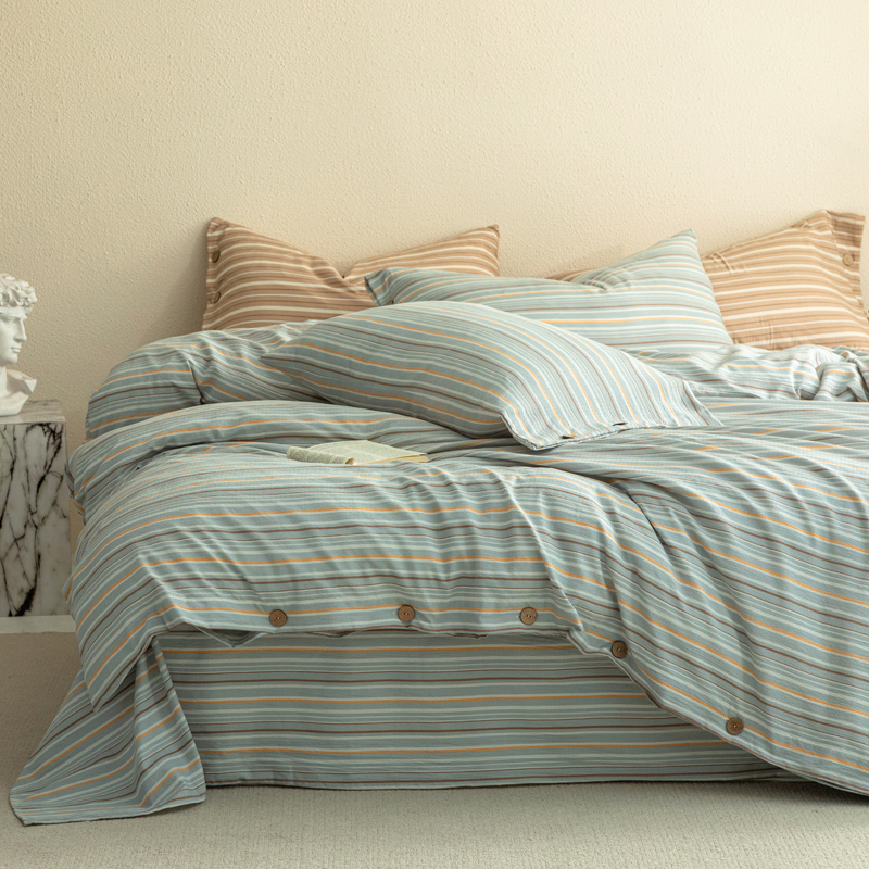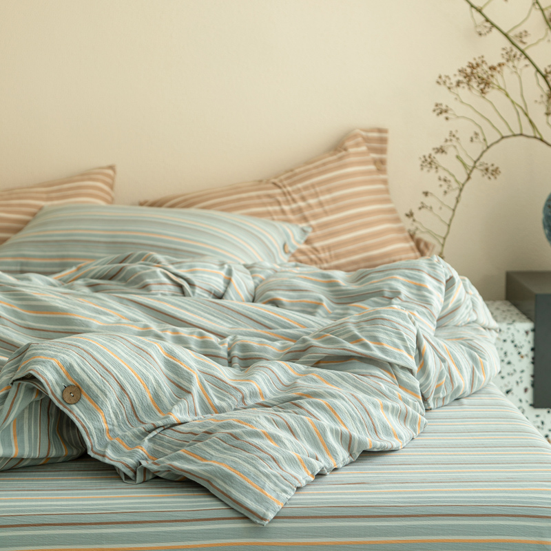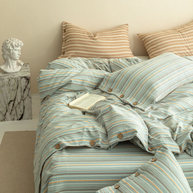 当前位置: 91家纺网 > 商品网购 > 床品套件 > 四件套 > 化纤活性四件套 > 库里梦家纺 2025新款皱皱纱亚麻纽扣式四件套 条纹-绿