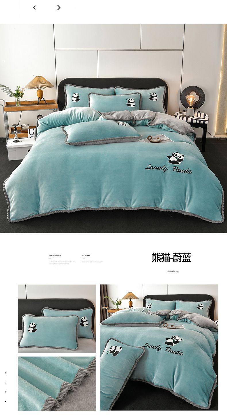 妮恒美 2025新款加厚牛奶绒刺绣四件套-熊猫系列 熊猫-蔚蓝