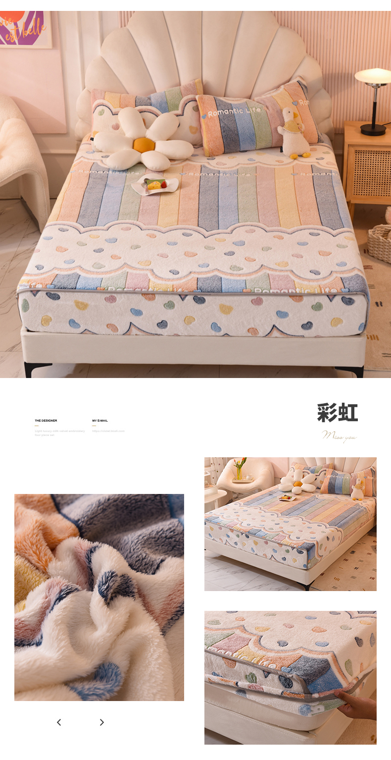 商品名称:慕梵家居2025新款雪花绒床笠 彩虹