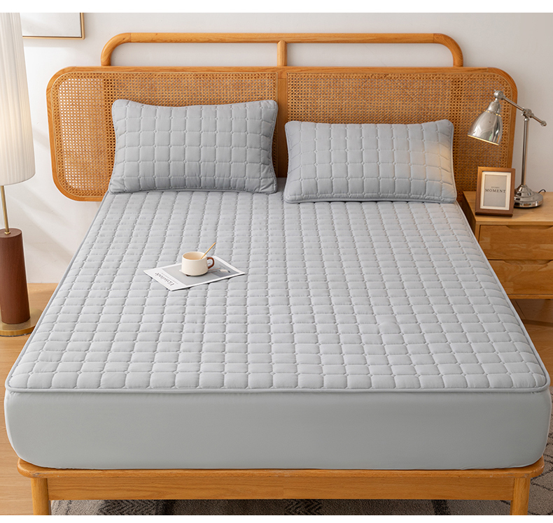 (总)拾小柒 2025年新款牛奶绒防滑床护垫加厚床垫隔脏垫冬季褥子床盖三件套,淡绿,浅粉,浅灰,浅水兰