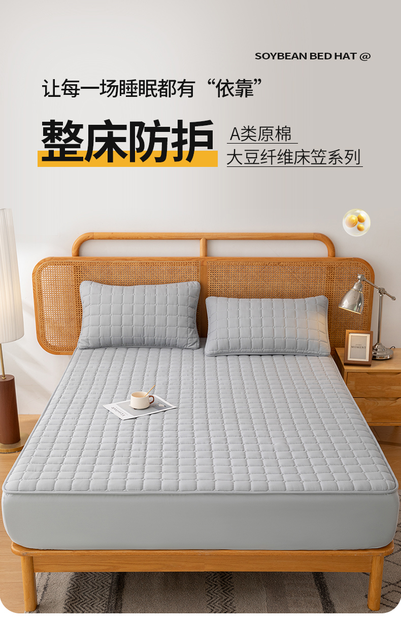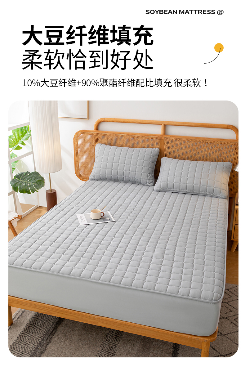 商品名称:拾小柒 2025新款A类原棉大豆纤维加厚床褥子床垫保护垫床笠款 柠檬黄