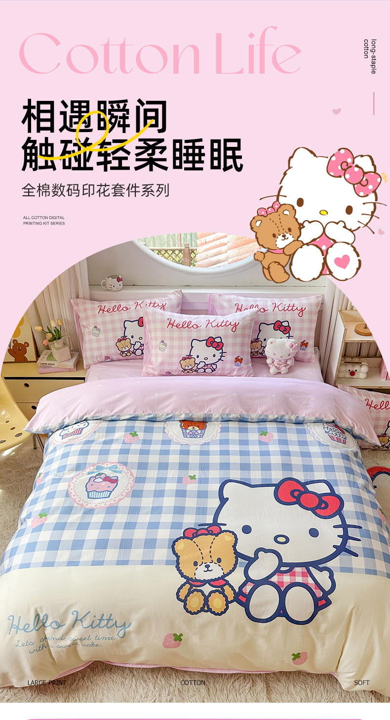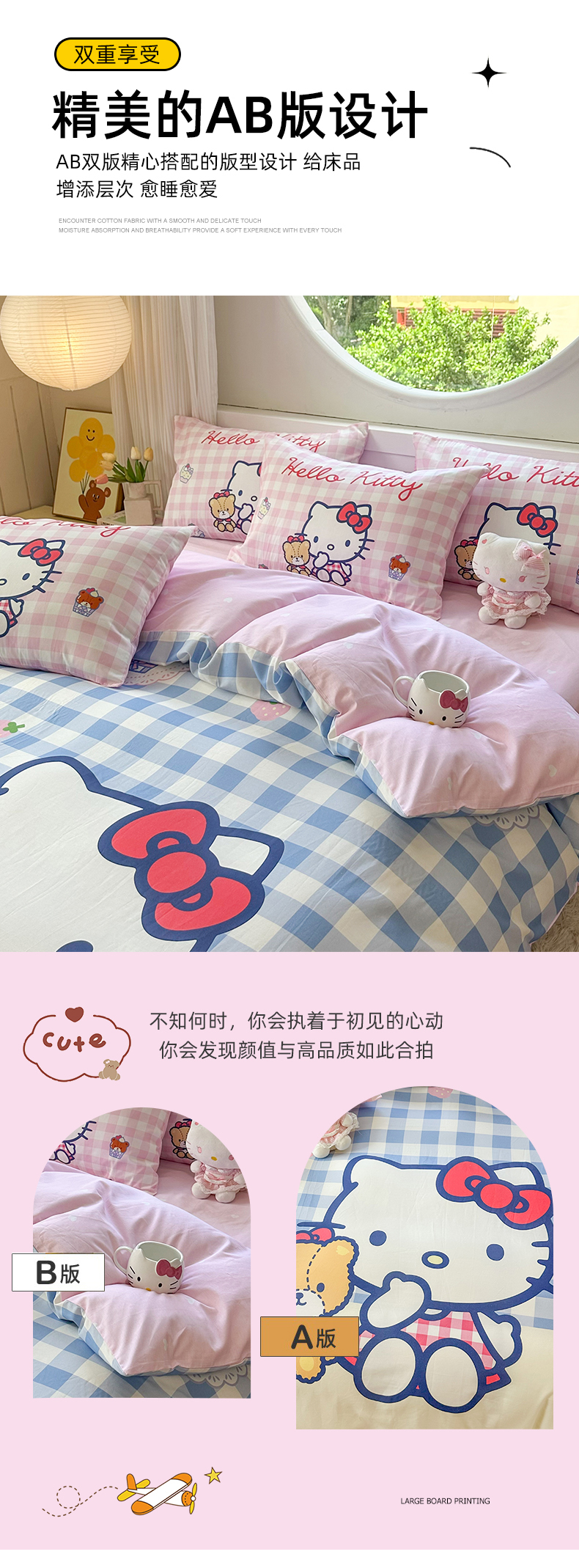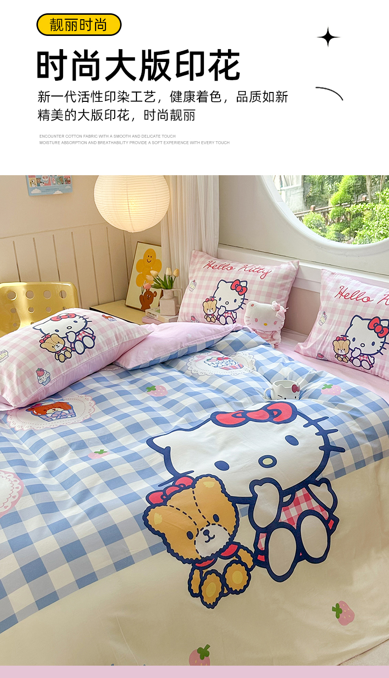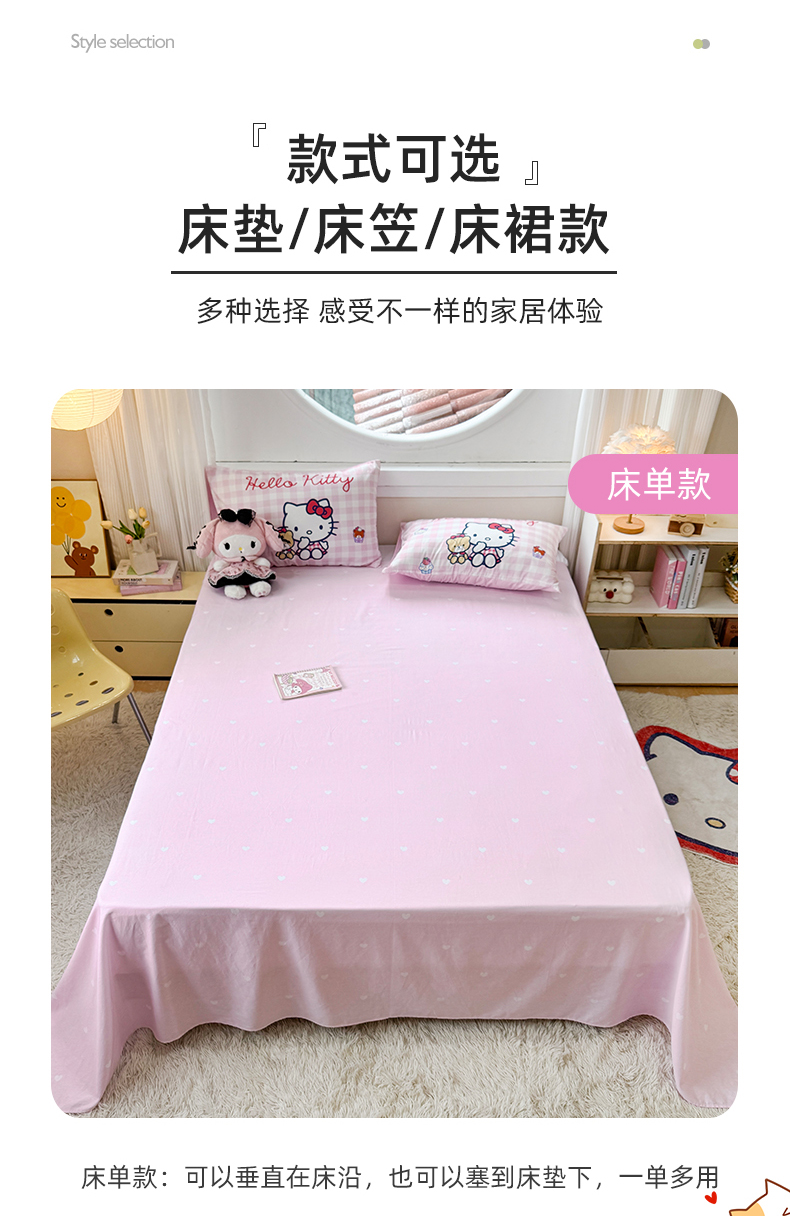 当前位置: 91家纺网 > 商品网购 > 床品套件 > 四件套 > 全棉普通四件套 > 玉元坊 2025新款大版三丽鸥系列全棉纯棉床单纯棉床裙三四件套简约款 凯蒂猫和熊