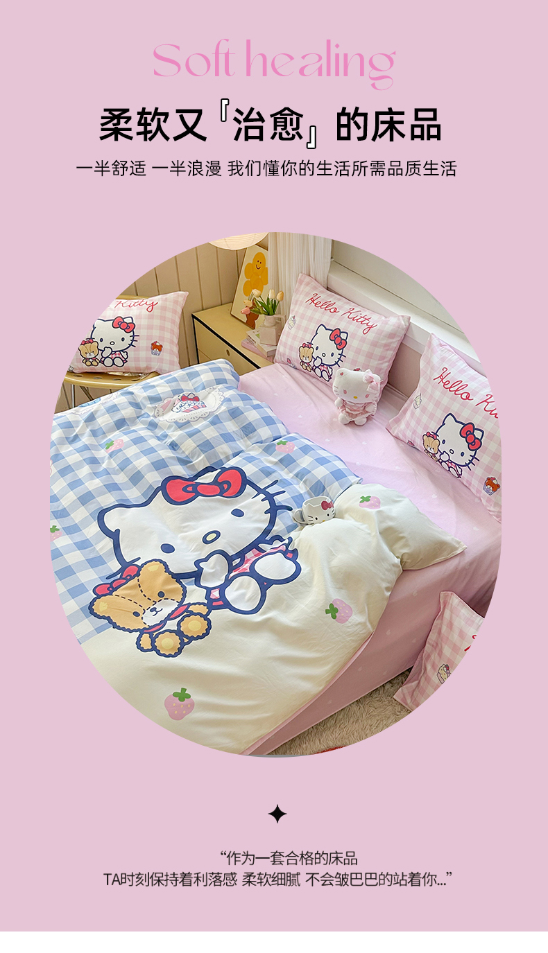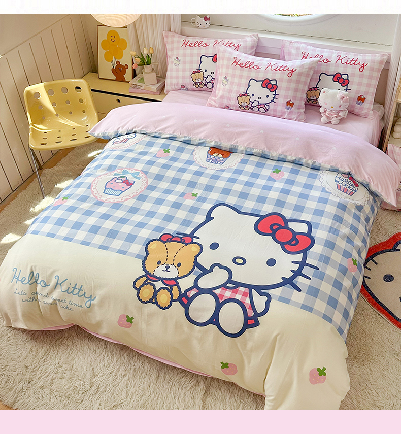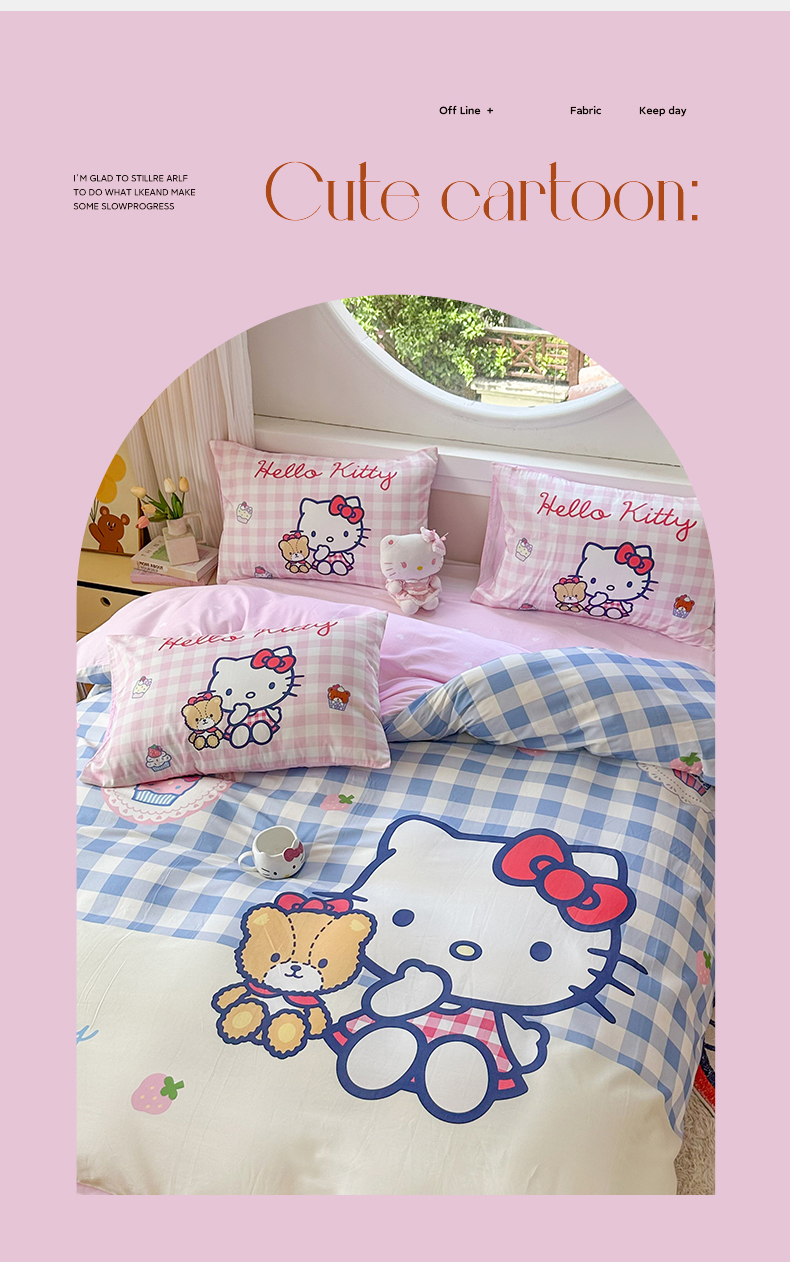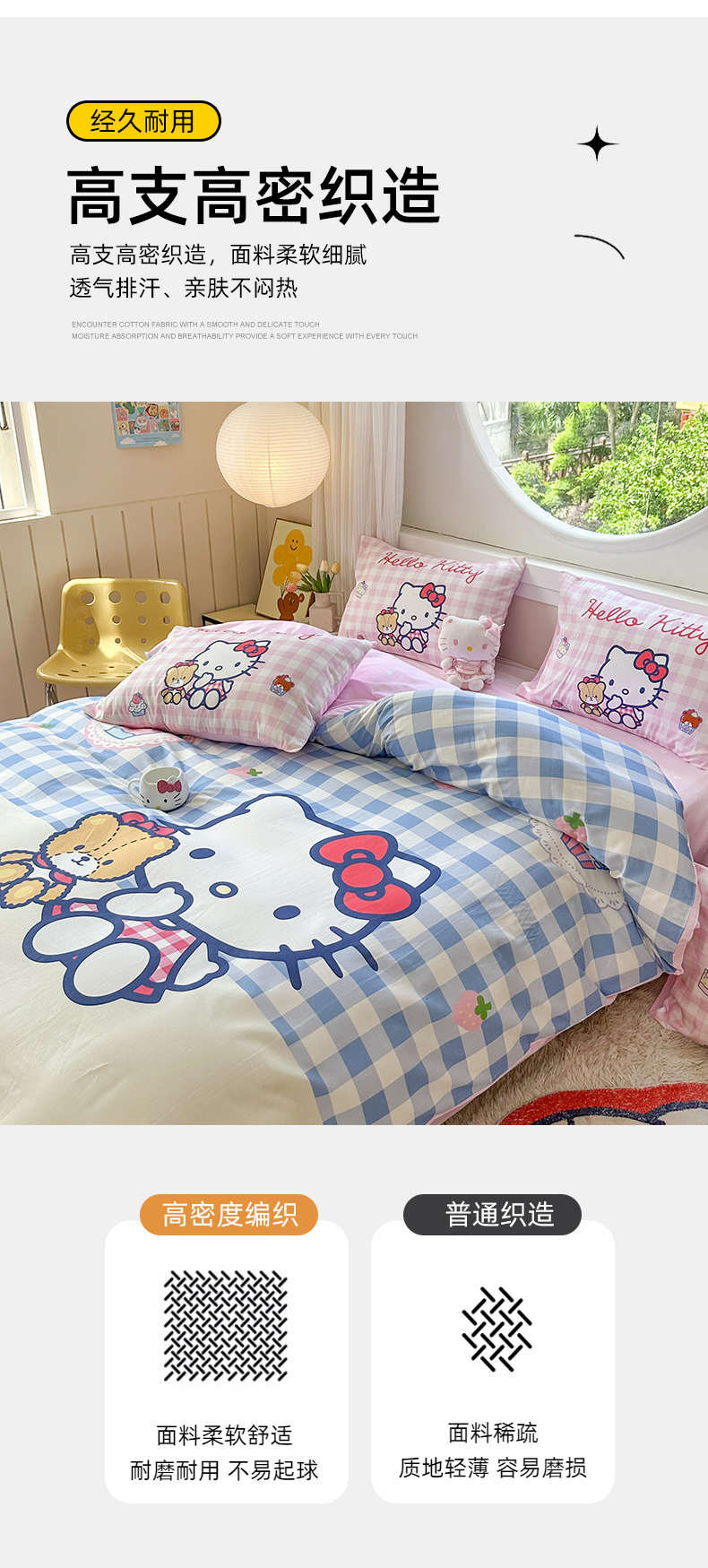 当前位置: 91家纺网 > 商品网购 > 床品套件 > 四件套 > 全棉普通四件套 > 玉元坊 2025新款大版三丽鸥系列全棉纯棉床单纯棉床裙三四件套简约款 凯蒂猫和熊