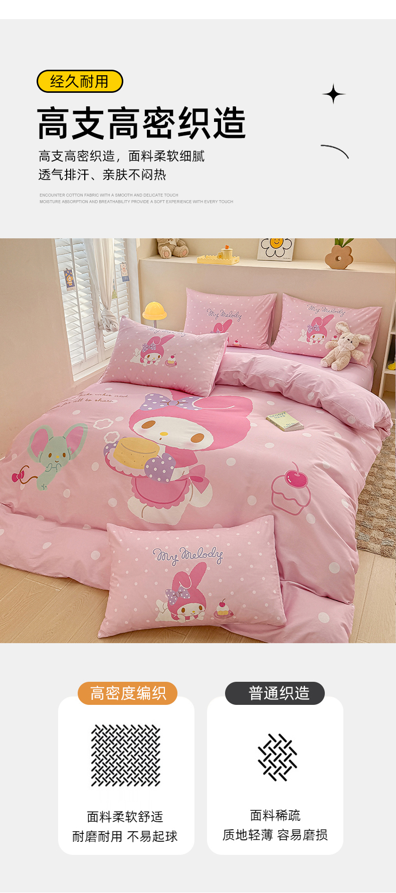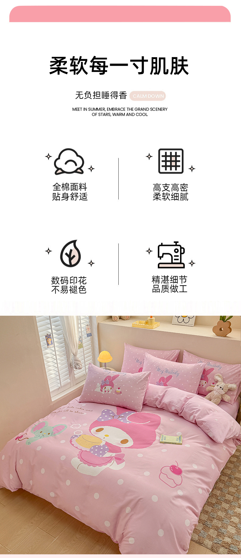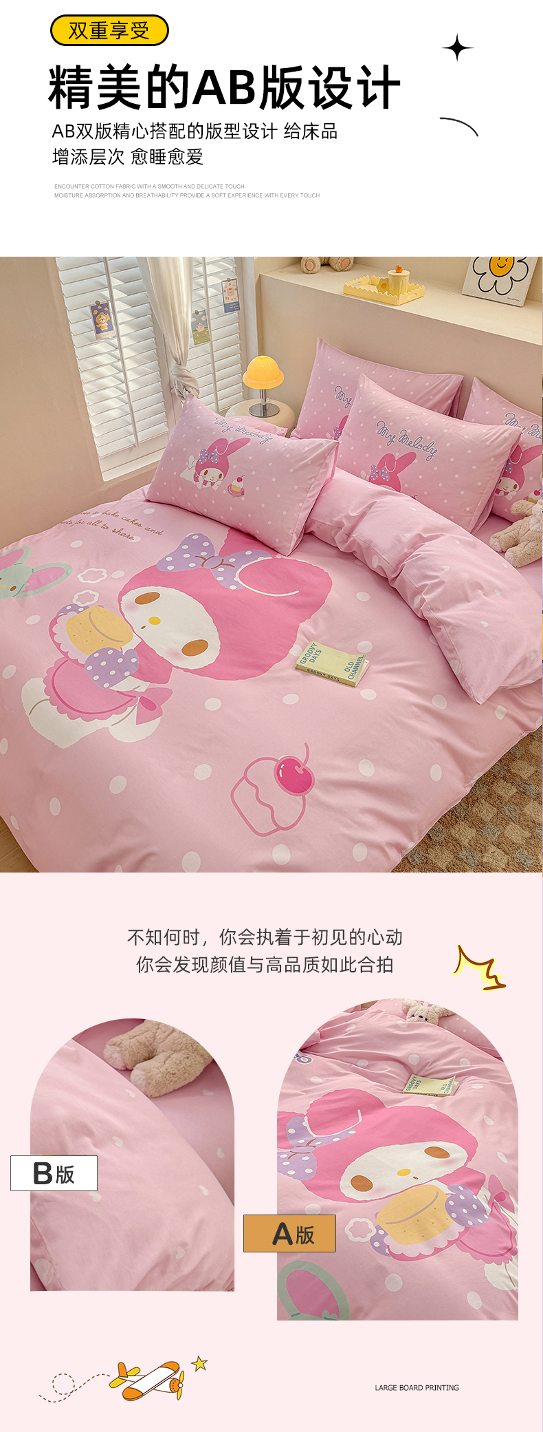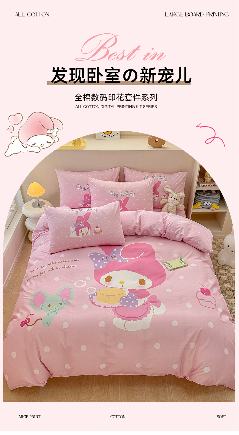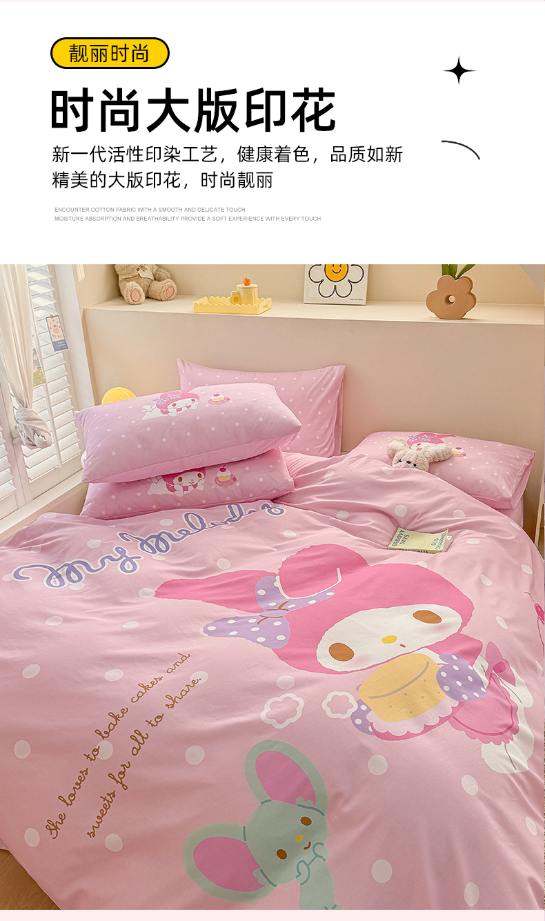 当前位置: 91家纺网 > 商品网购 > 床品套件 > 四件套 > 全棉普通四件套 > 玉元坊 2025新款大版三丽鸥系列全棉纯棉床单纯棉床裙三四件套简约款 甜品美乐蒂