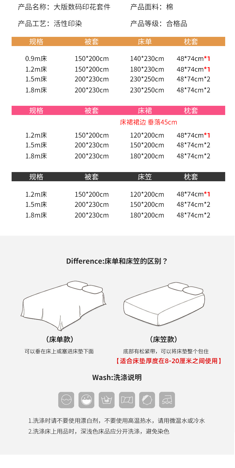 1.8m床 四件套 床裙款式 | ¥150.00 |