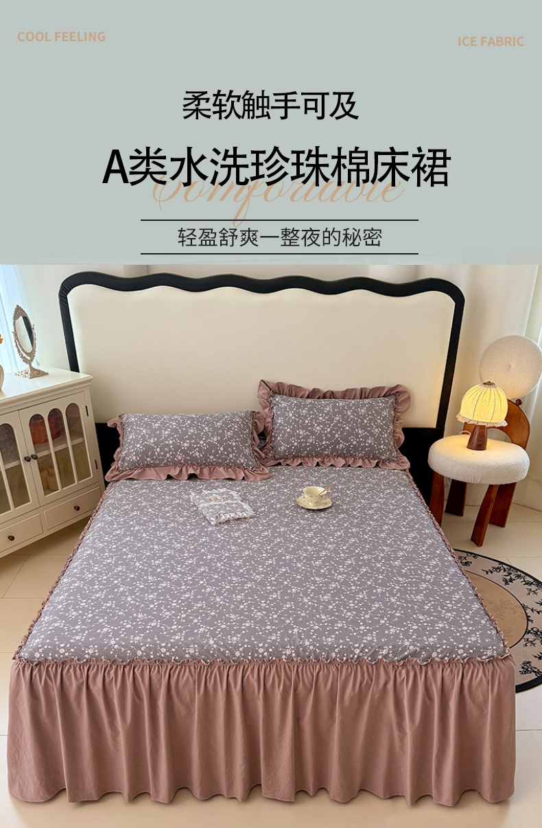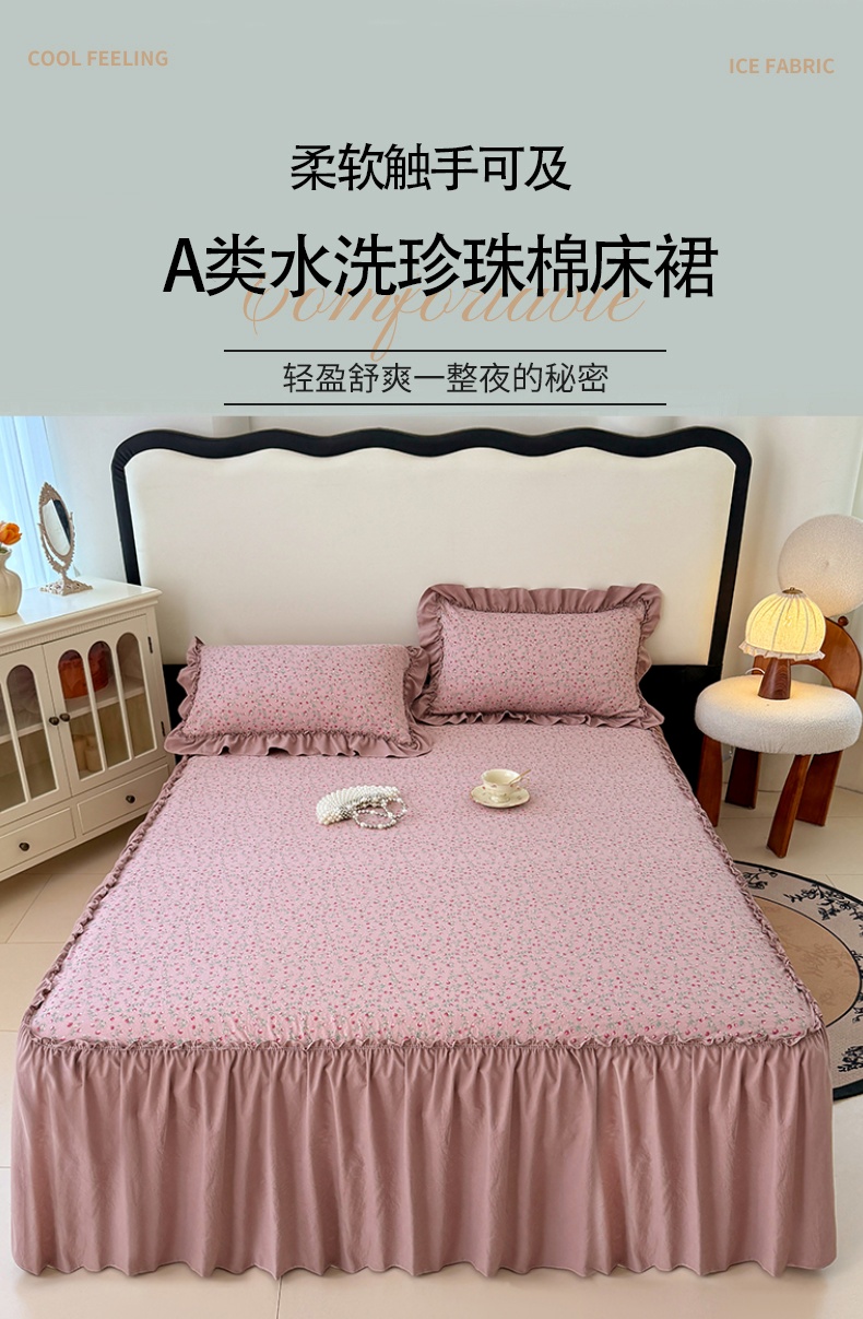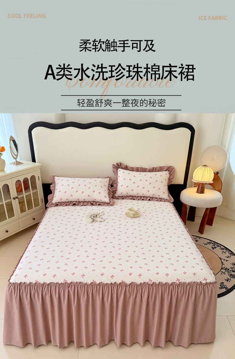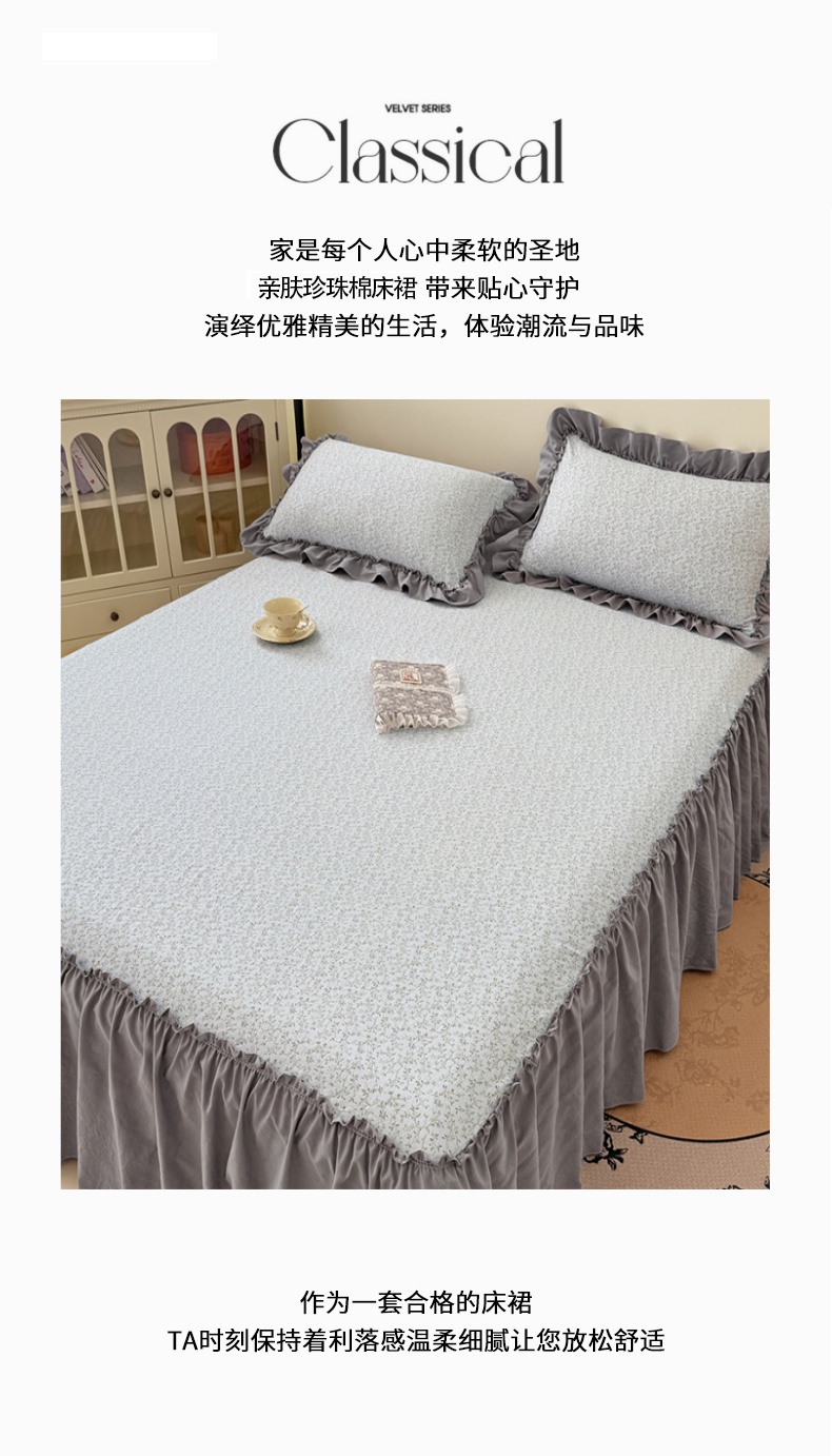圣比熊 2025新款水洗珍珠棉单件床裙双层纱床垫保护罩三件套 组合图仅供展示