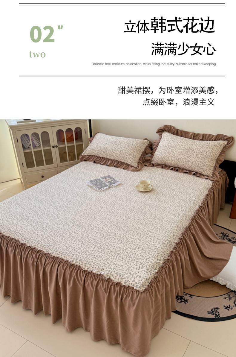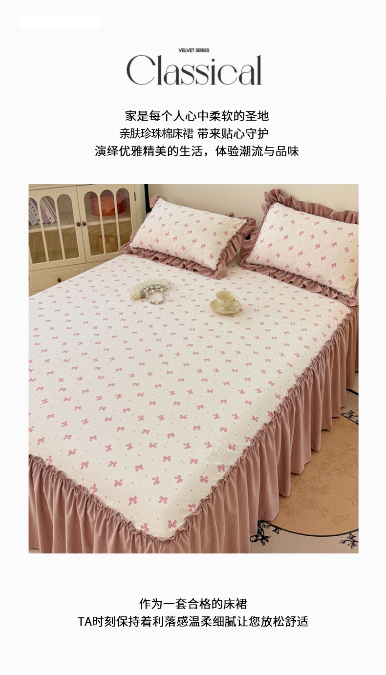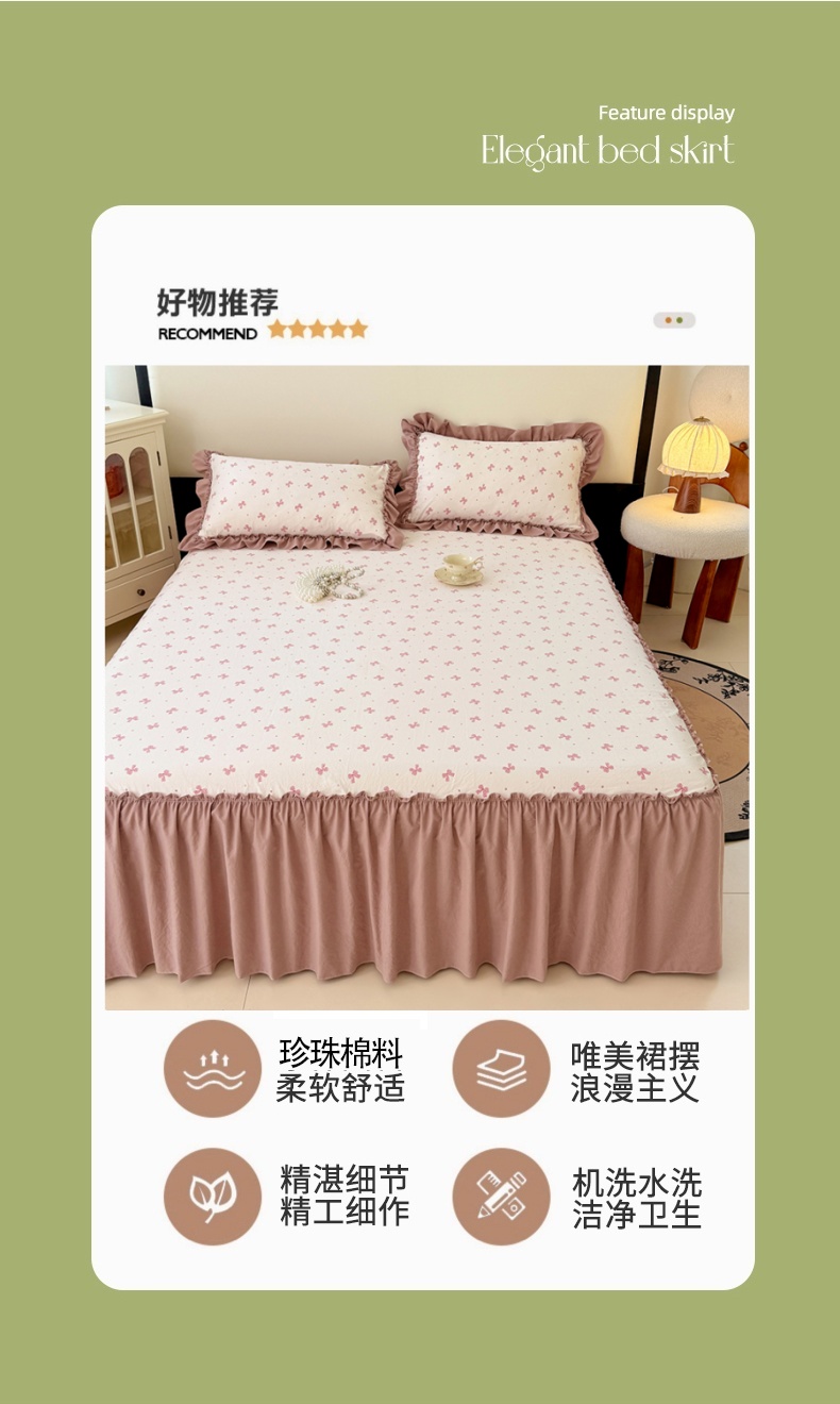 圣比熊 2025新款水洗珍珠棉单件床裙双层纱床垫保护罩三件套 组合图仅供展示