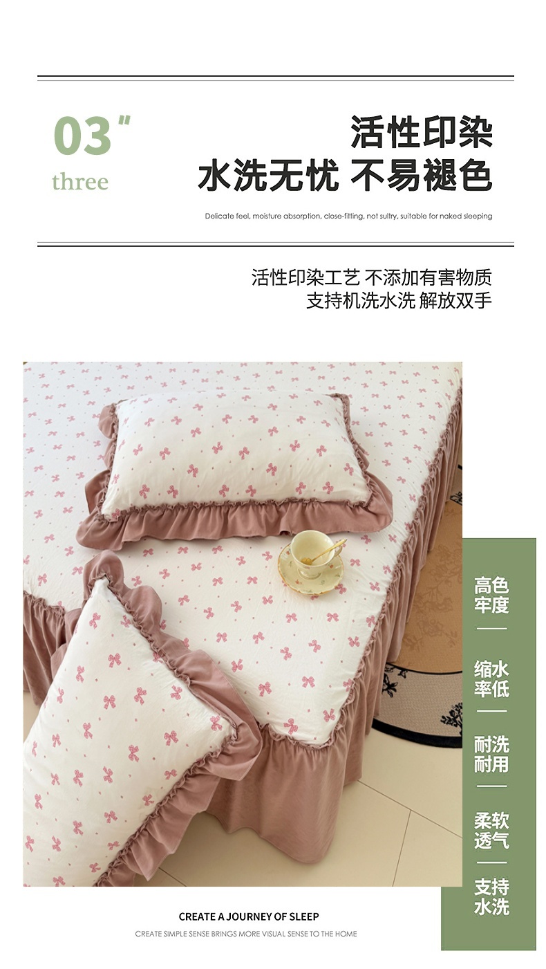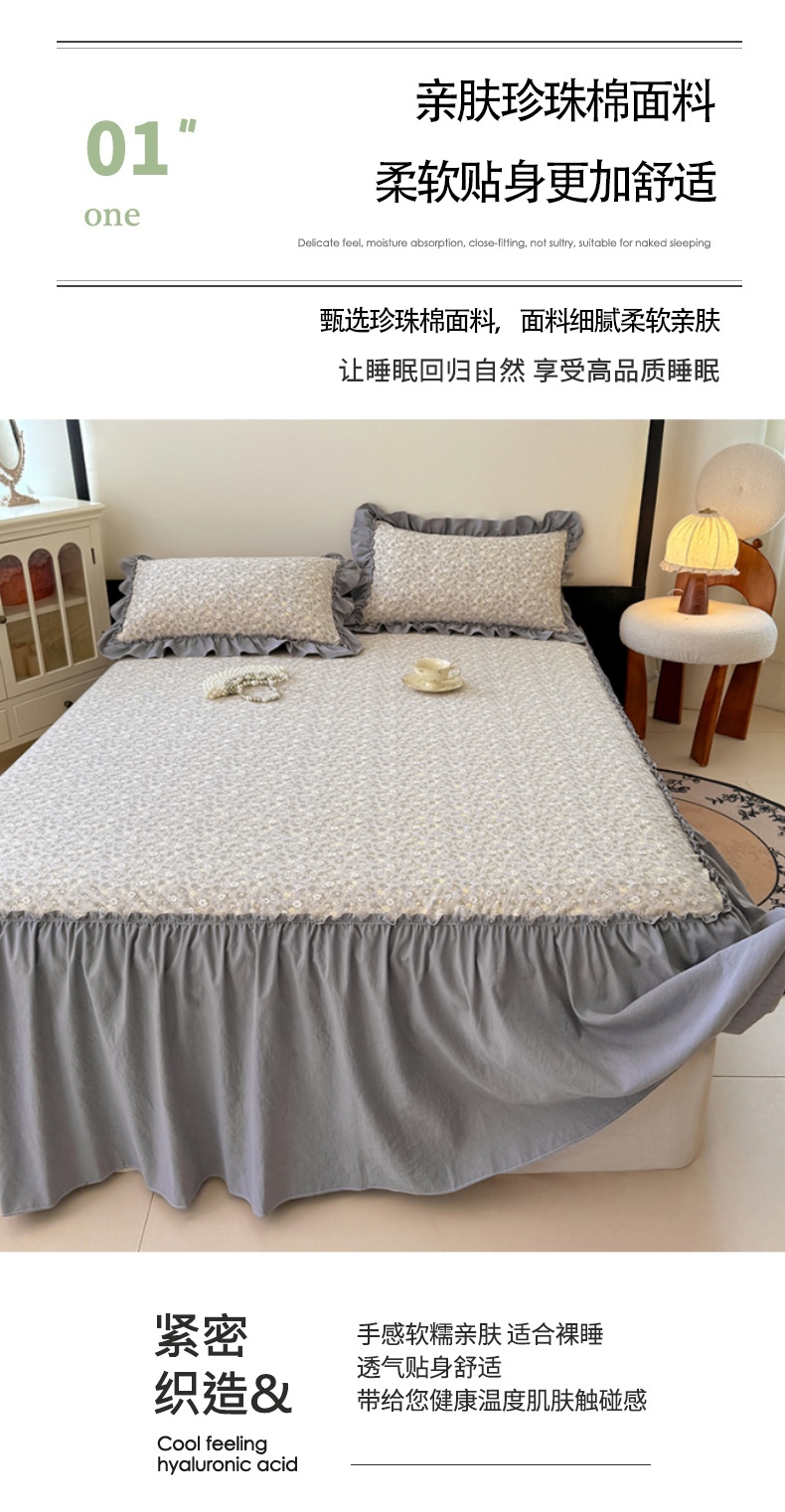 商品名称:圣比熊 2025新款水洗珍珠棉单件床裙双层纱床垫保护罩三件套 组合图仅供展示