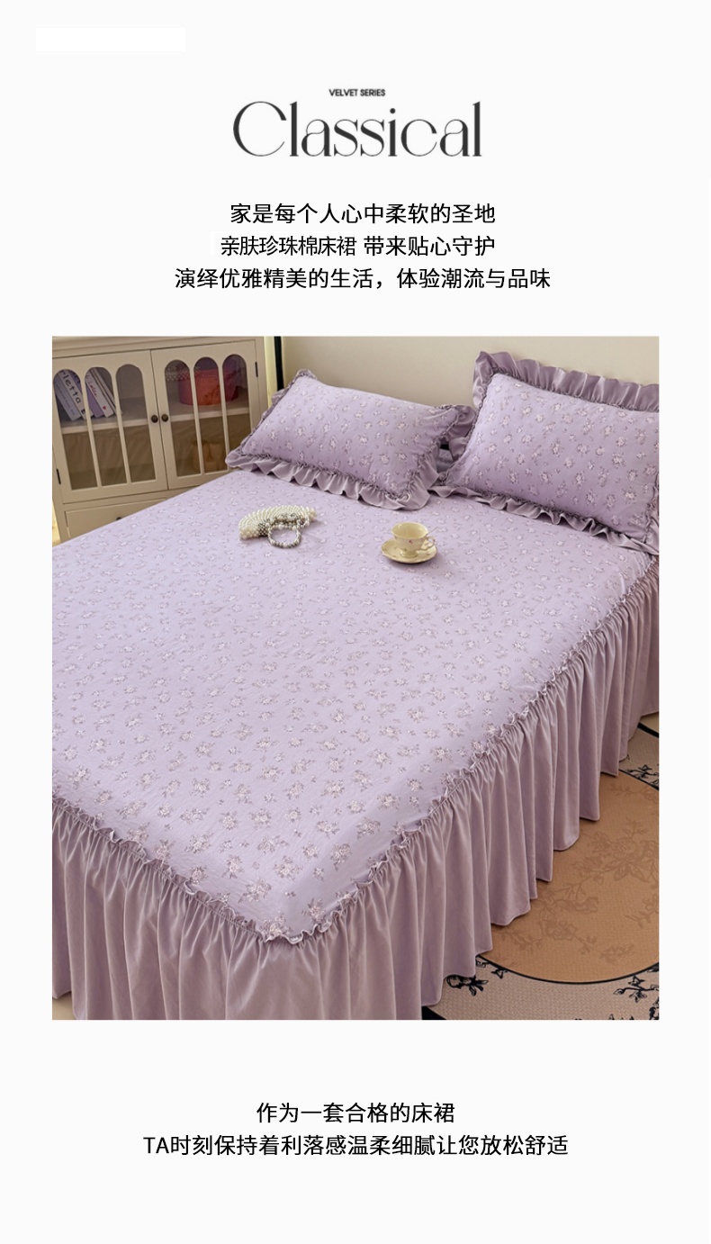 (总)圣比熊 2025新款水洗珍珠棉单件床裙双层纱床垫保护罩三件套,玫瑰之约,柏林梦境-咖,花未眠-紫,花知晓,蓝相思,墨染芳华,宁静花园,怦然心动,浅影摇曳-紫,樱桃季,云裳花谷,紫倾心,组合图仅供展示