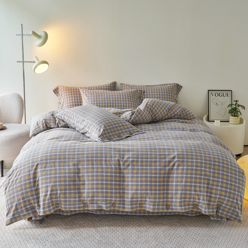 商品名称:贝尔 PELLHOME 全棉色织水洗棉格子单被套(可抖音代发) 梦田-黄