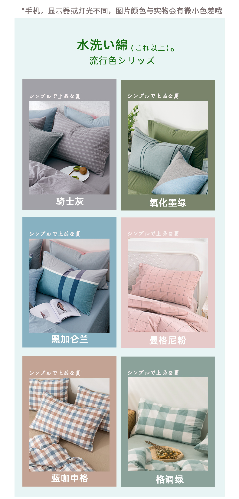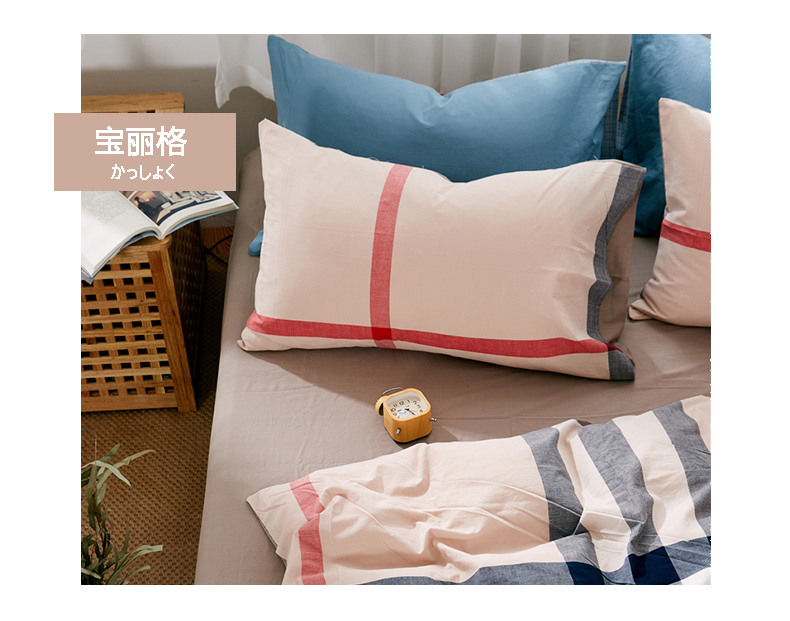 • 91家纺网 家纺一手货源 找家纺 贝尔 PELLHOME 纯棉枕套纯色良品格子水洗棉简约48*74单人(可抖音代发) 蓝咖中格