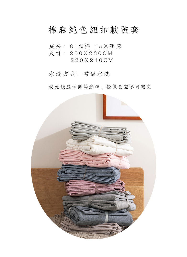 商品名称:贝尔 PELLHOME 简约复古风美日式纯素色纽扣棉麻透气舒适亚麻北欧单被套(可抖音代发) 烟雾绿