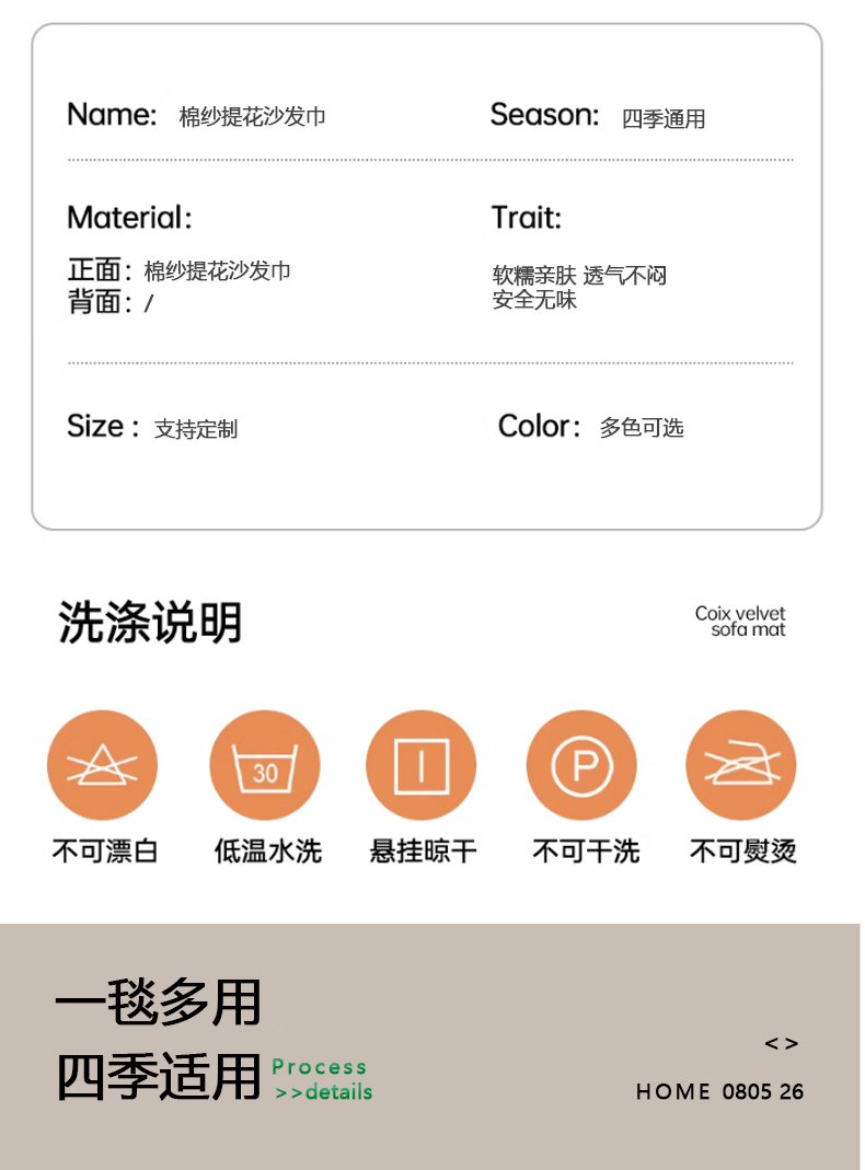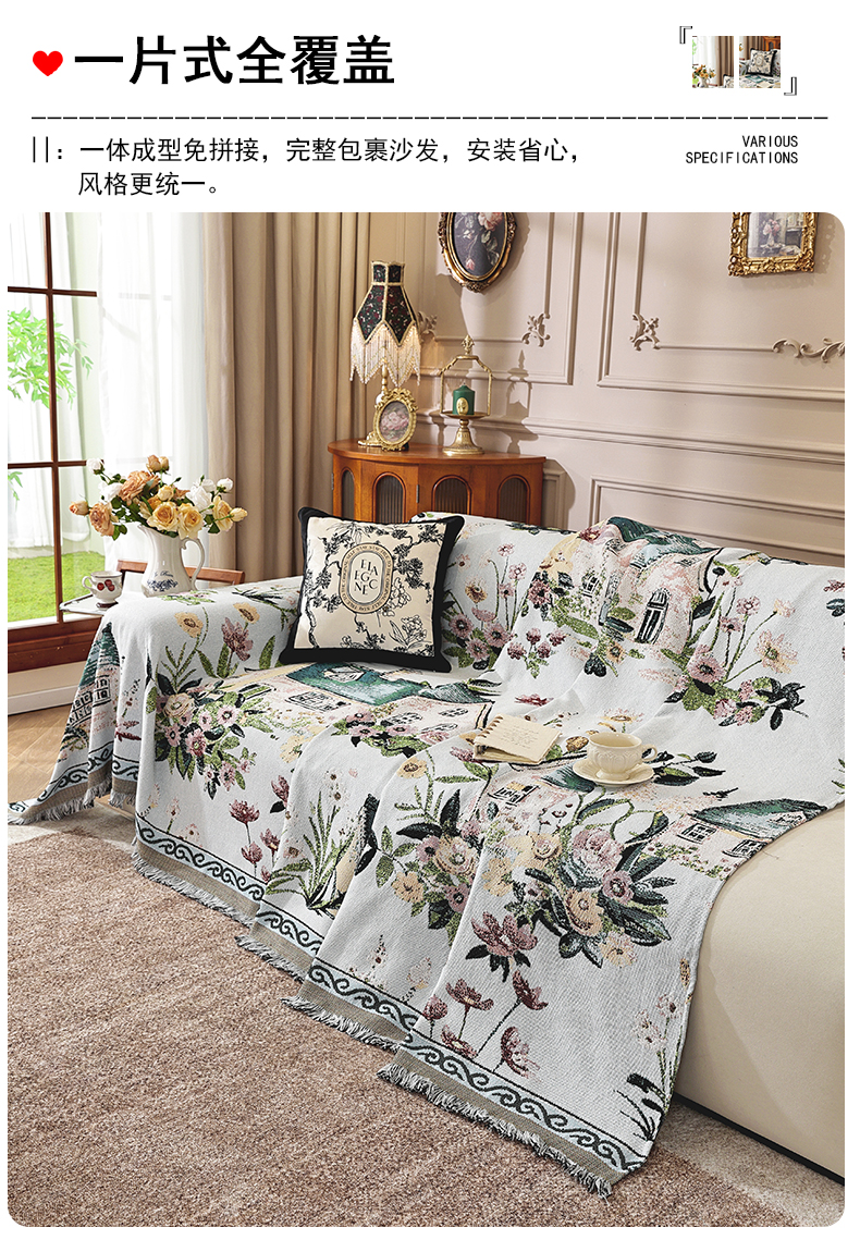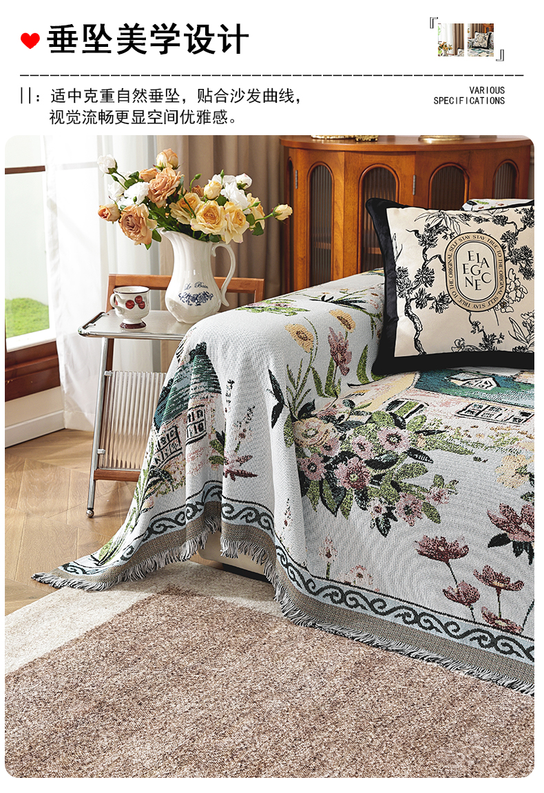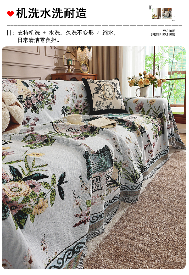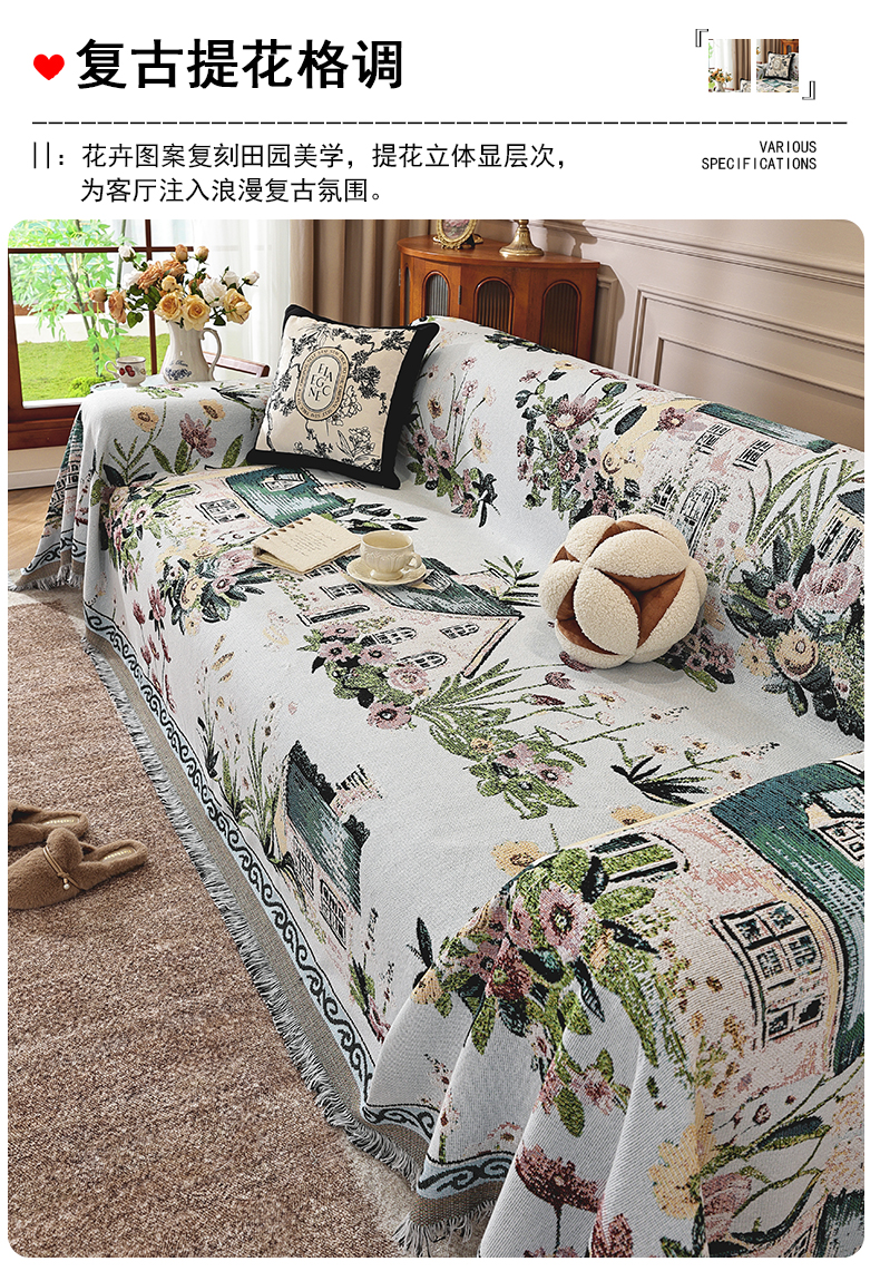 当前位置: 91家纺网 > 商品网购 > 居家布艺 > 坐垫/椅垫/沙发垫 > 沙发 > 共鸣沙发垫 2025新款棉纱提花沙发巾 田园小镇