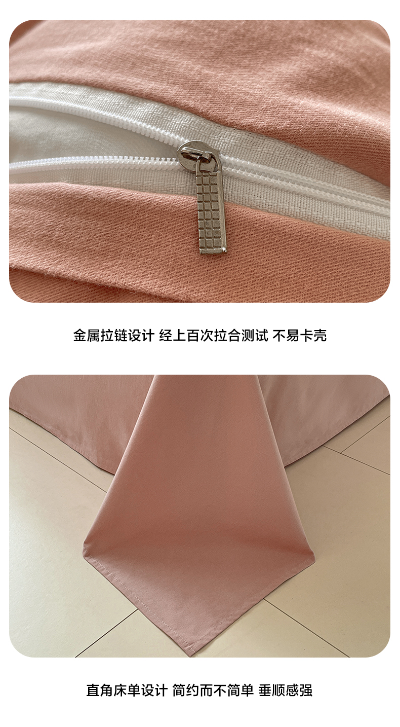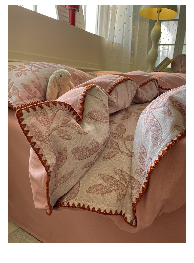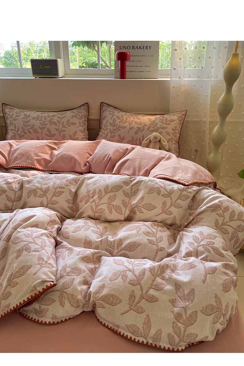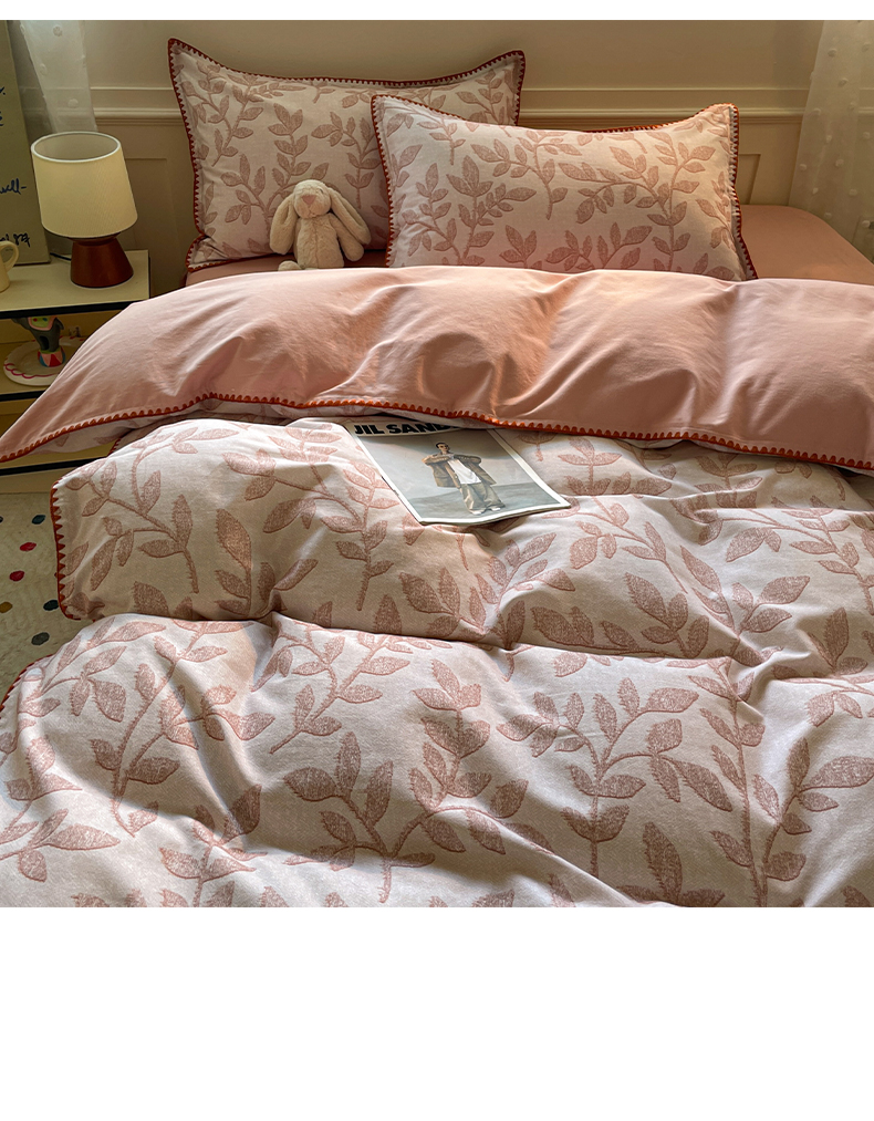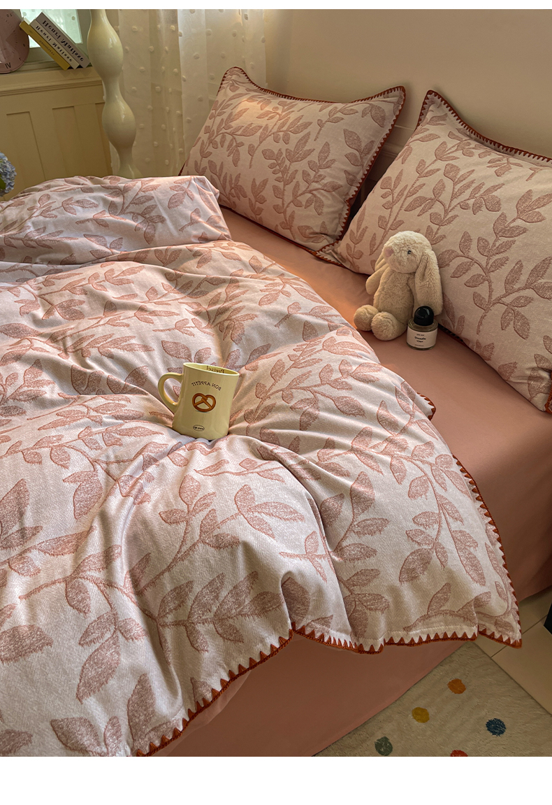 如一 2025新款加厚全棉磨毛三角针四件套 叶语-粉