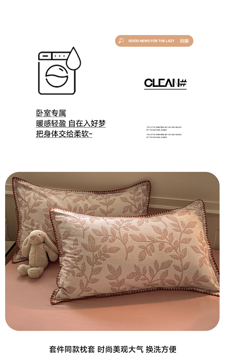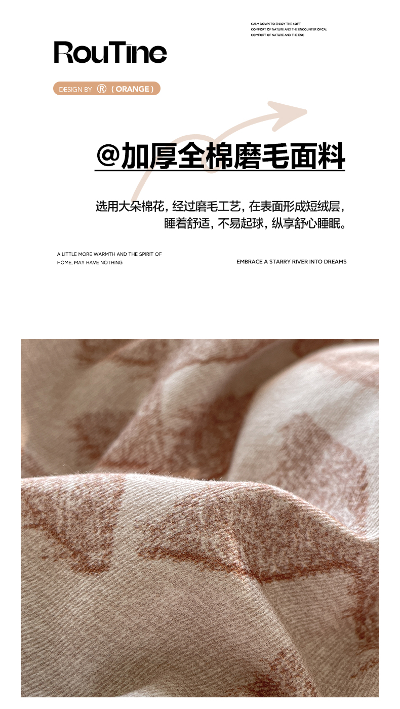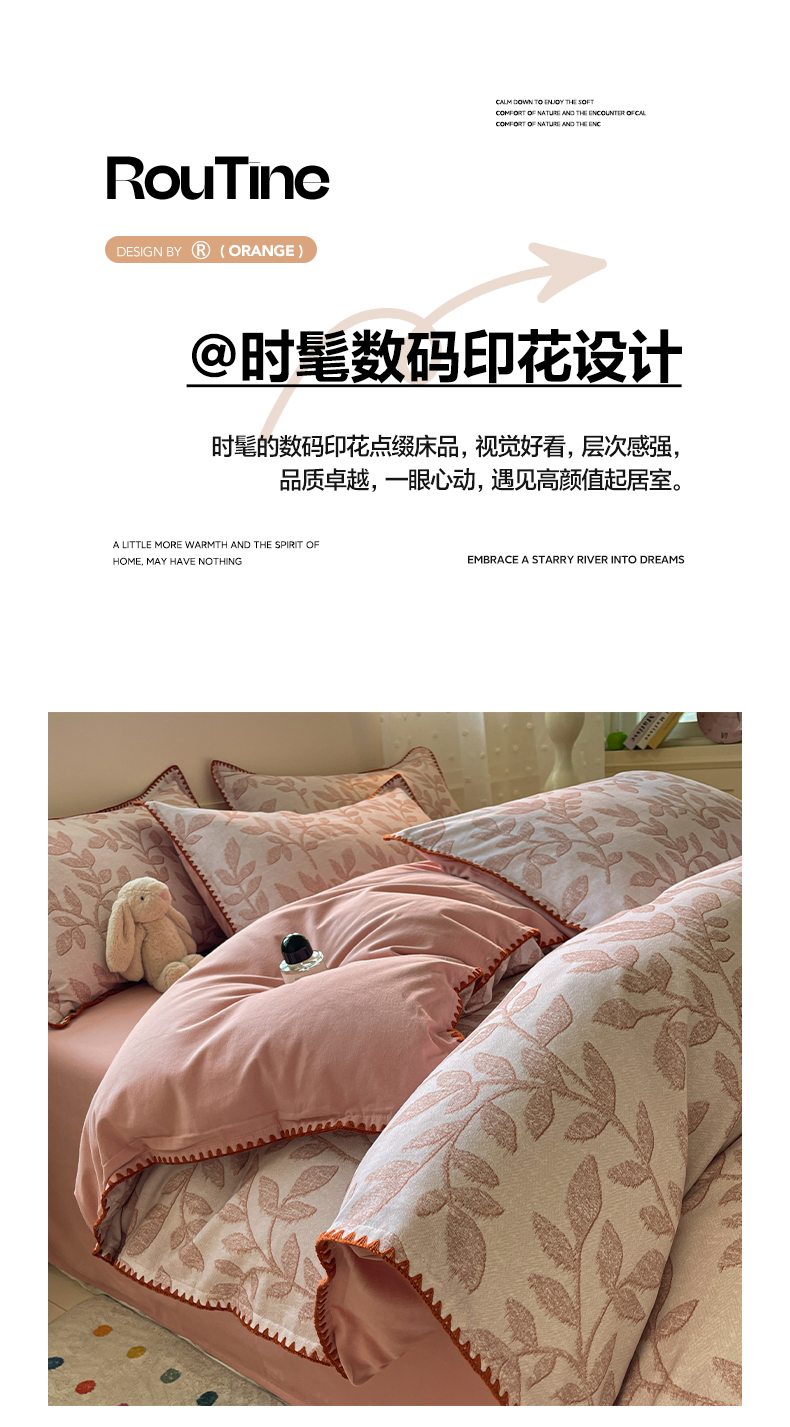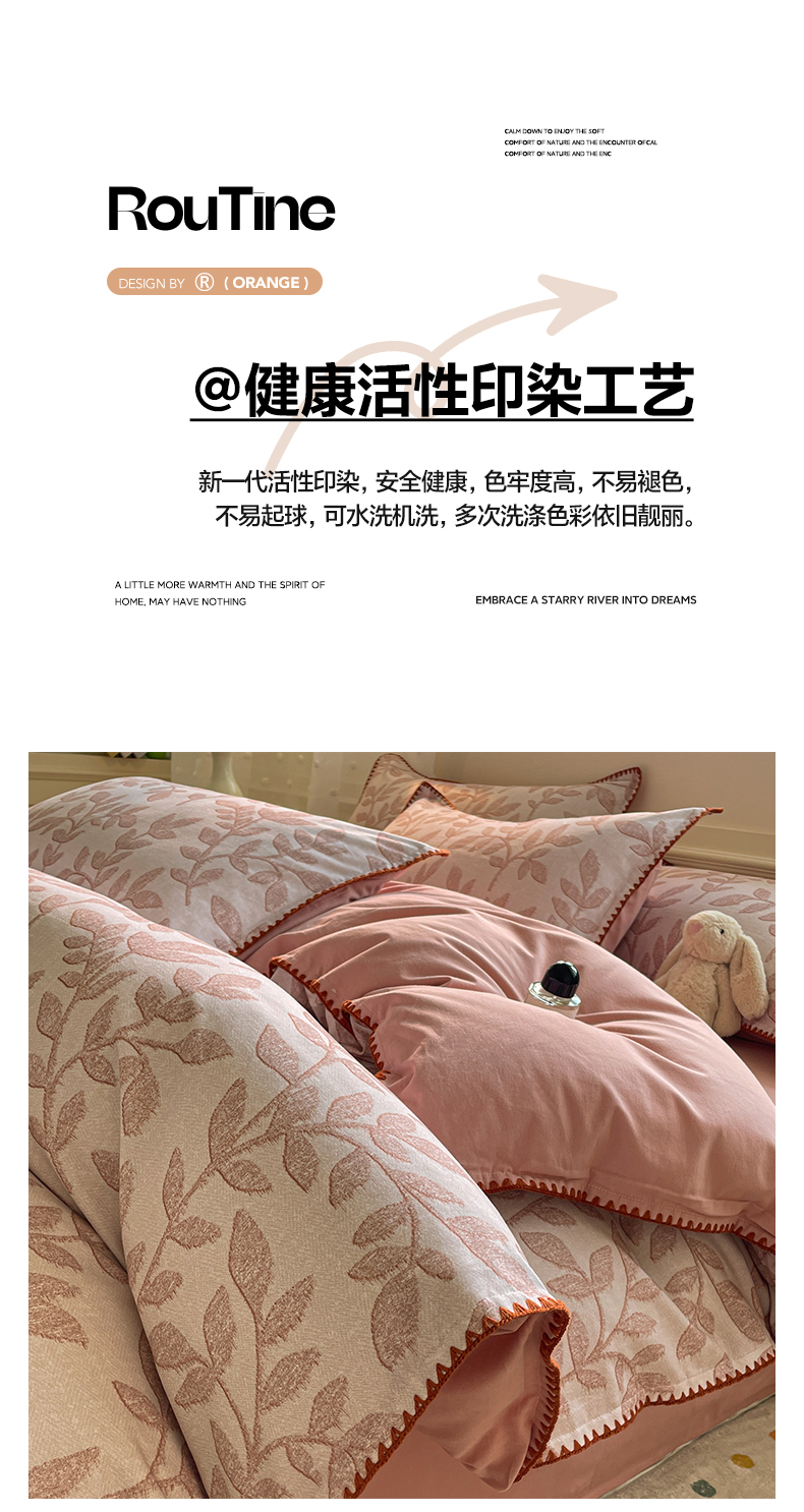 商品名称:如一 2025新款加厚全棉磨毛三角针四件套 叶语-粉