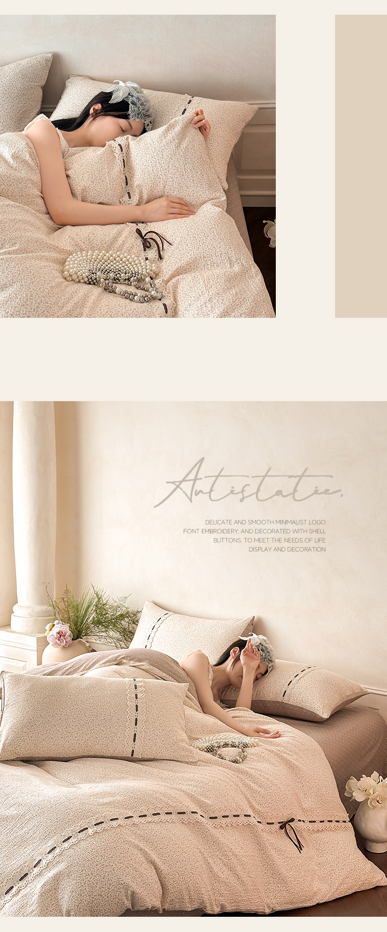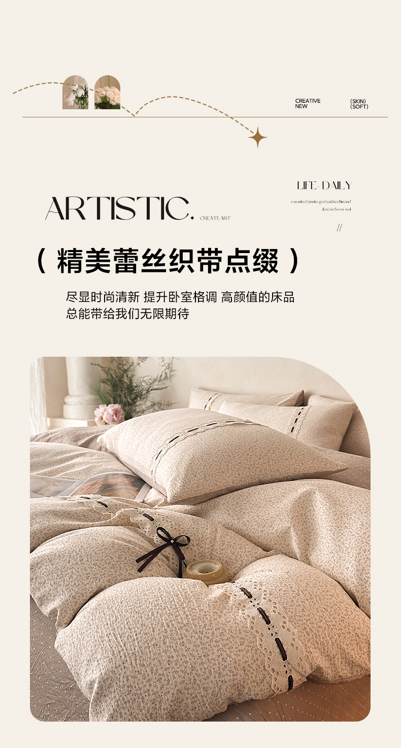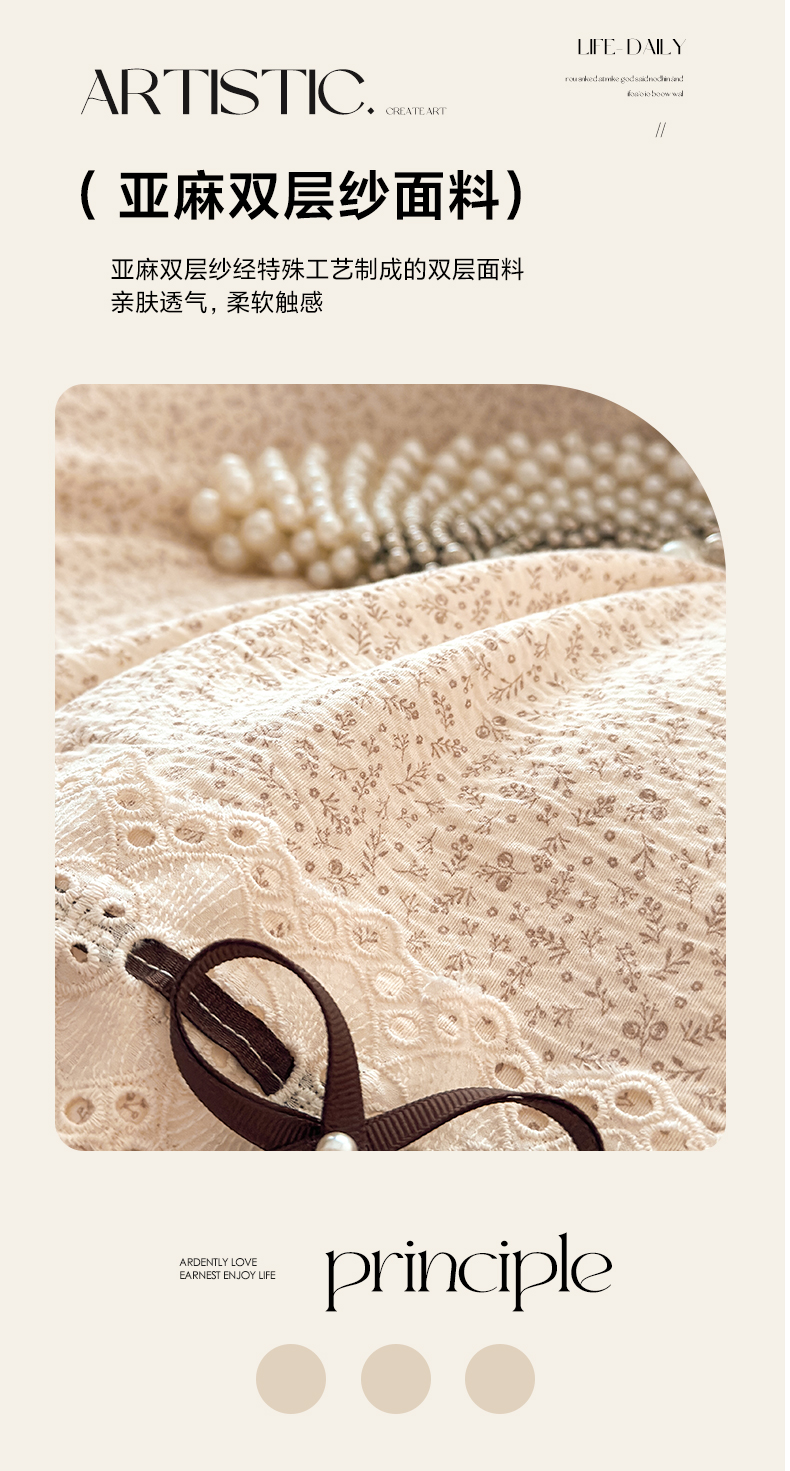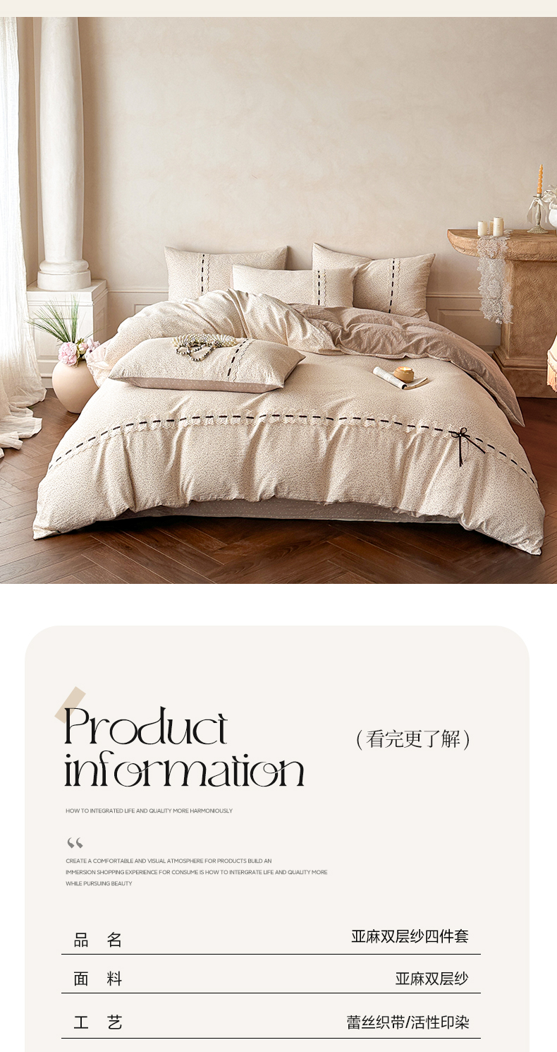 遇见家居生活馆 2025新款亚麻双层纱四件套-叶知秋(小号108 标准128,加大138) 叶知秋-卡其