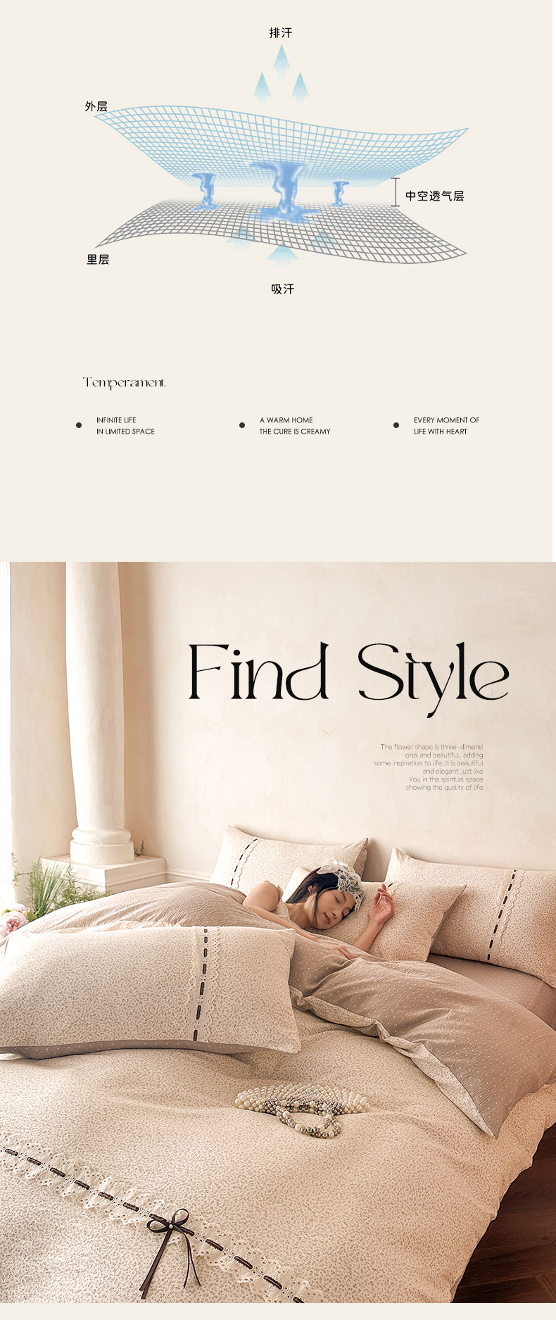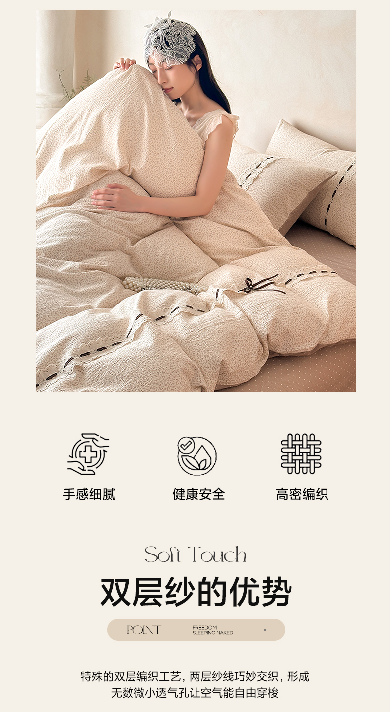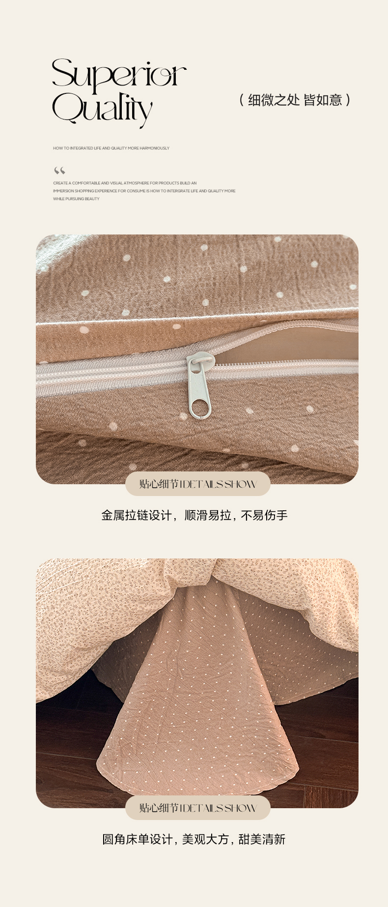 遇见家居生活馆 2025新款亚麻双层纱四件套-叶知秋(小号108 标准128,加大138) 叶知秋-卡其