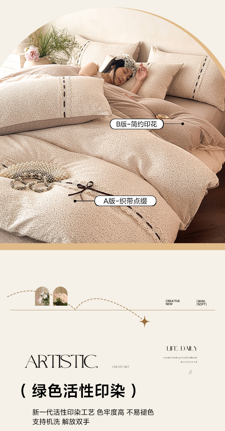 (总)2025新款小清新全棉纯棉四件套-若溪,麦田绿,茉莉奶白,霞光紫,杏花粉,雪山粉