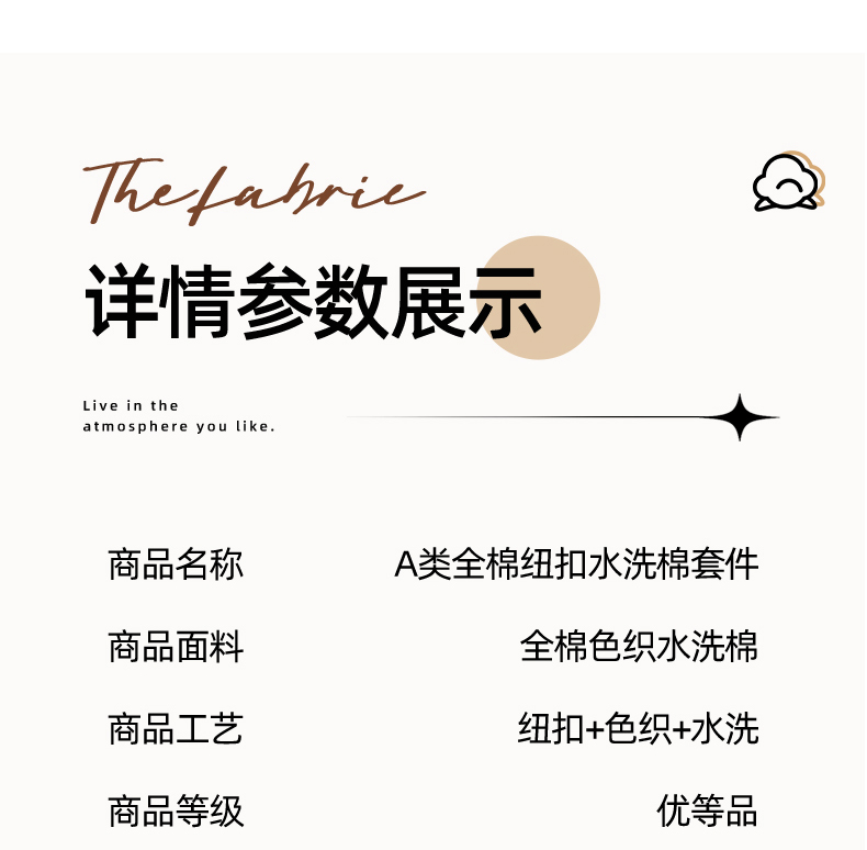 商品名称:(总)贝尔 A类全棉纽扣水洗棉四件套