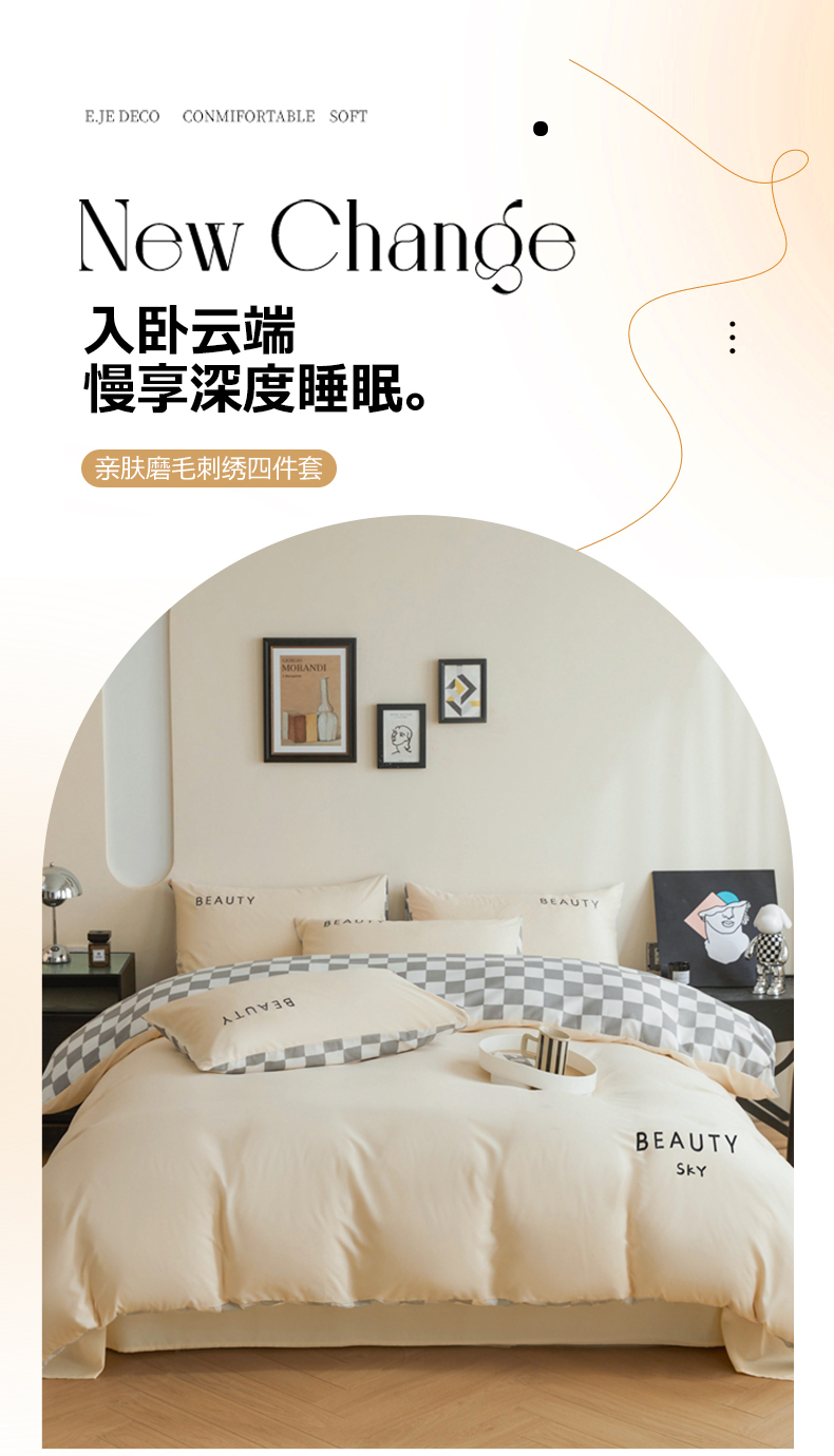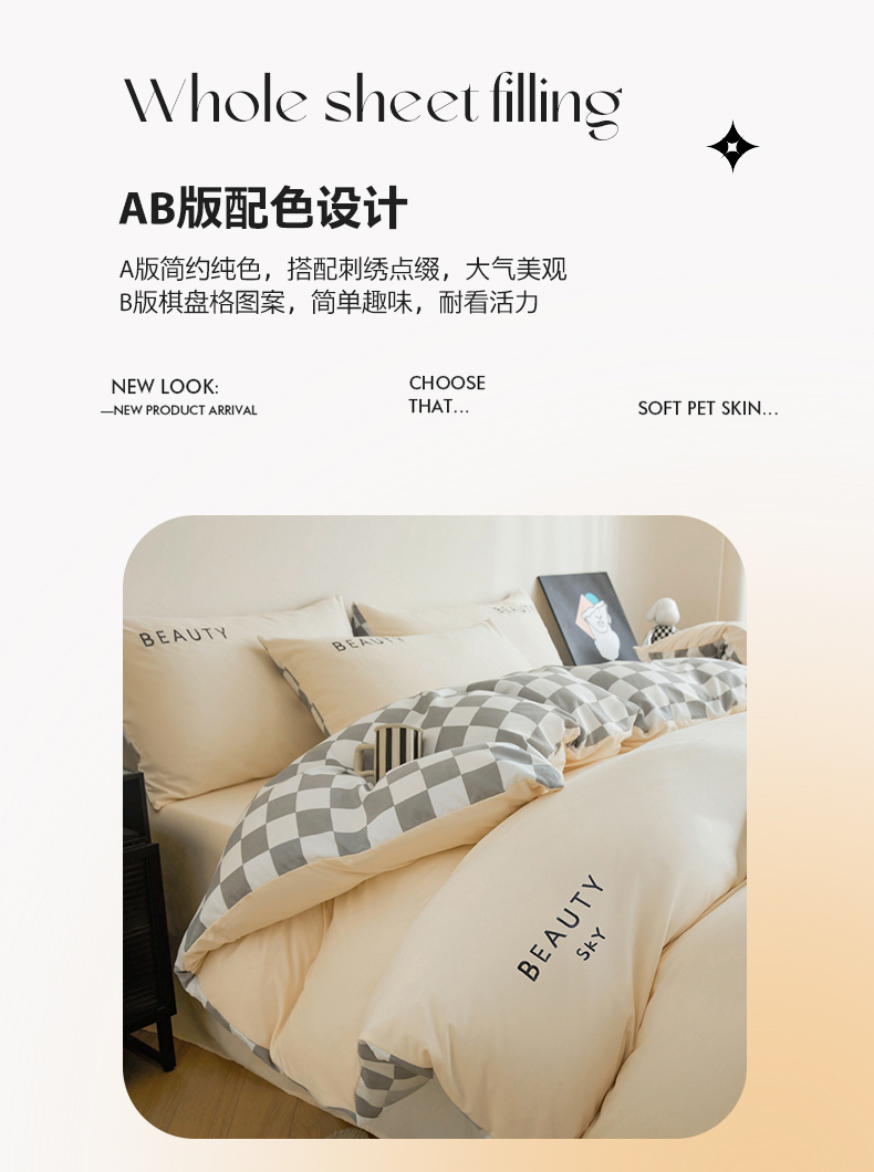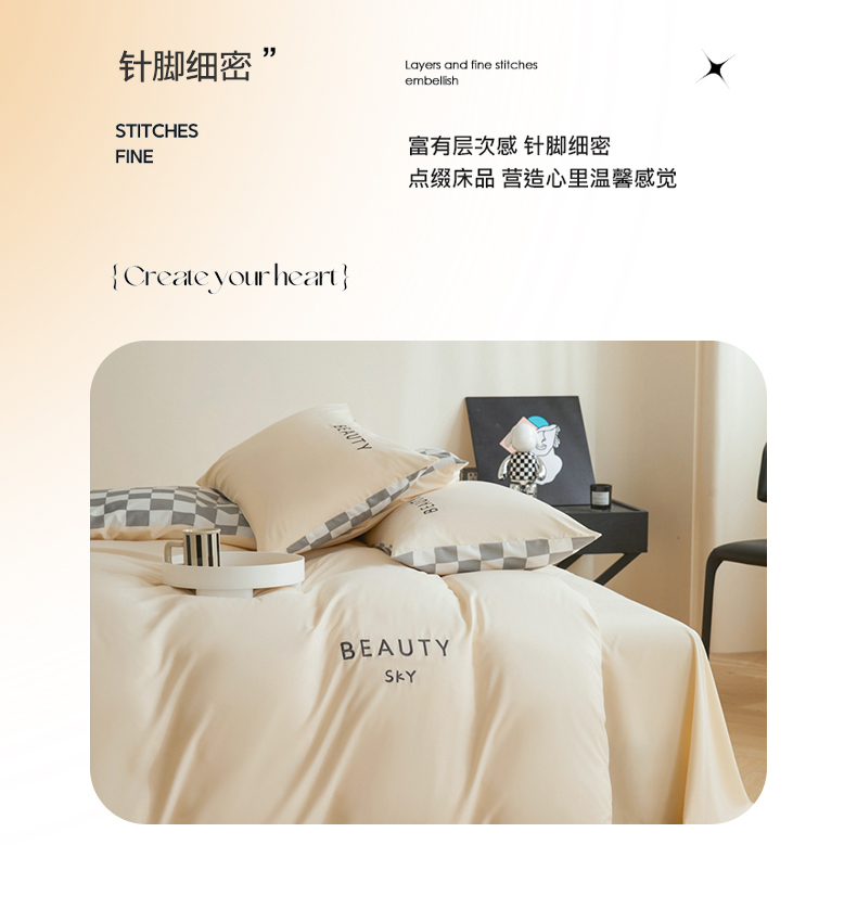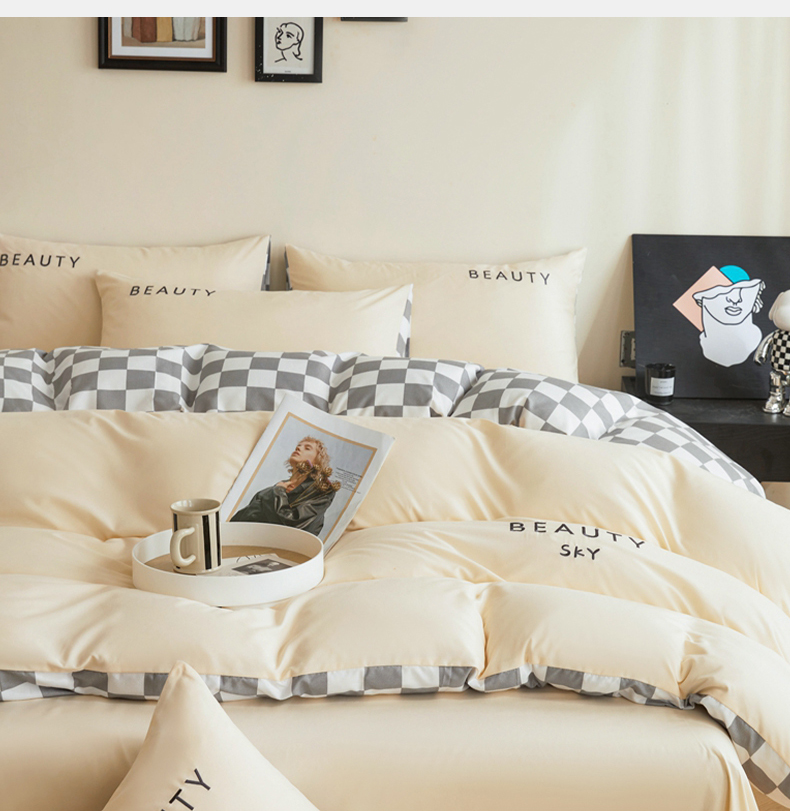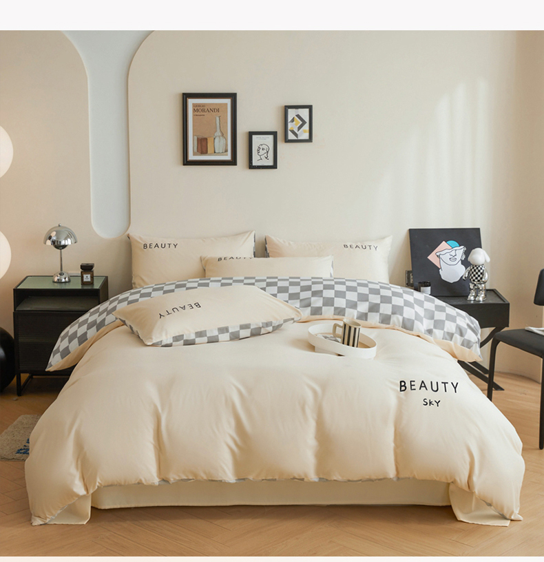 (总)麦空家居 2025新款水洗棉刺绣四件套-布丁(棋盘格),牛油果,奶昔白,爱马橙,宾利蓝,绅士灰,高山灰,奶油粉,天空兰