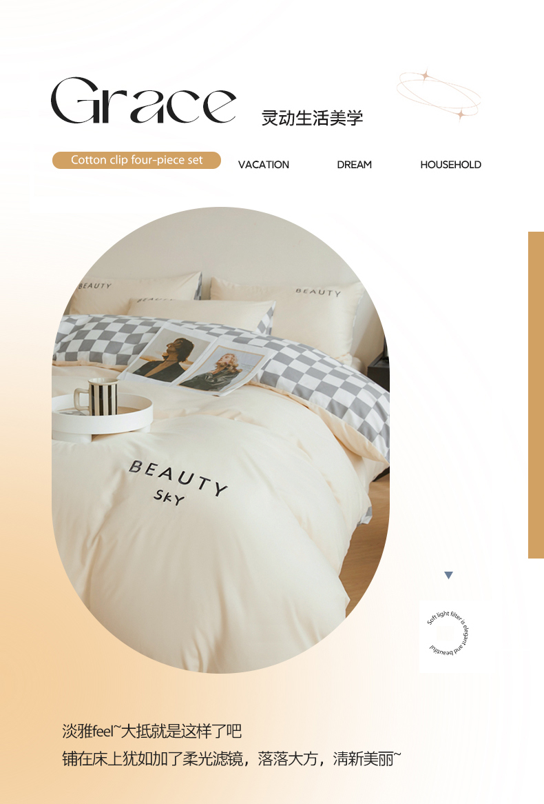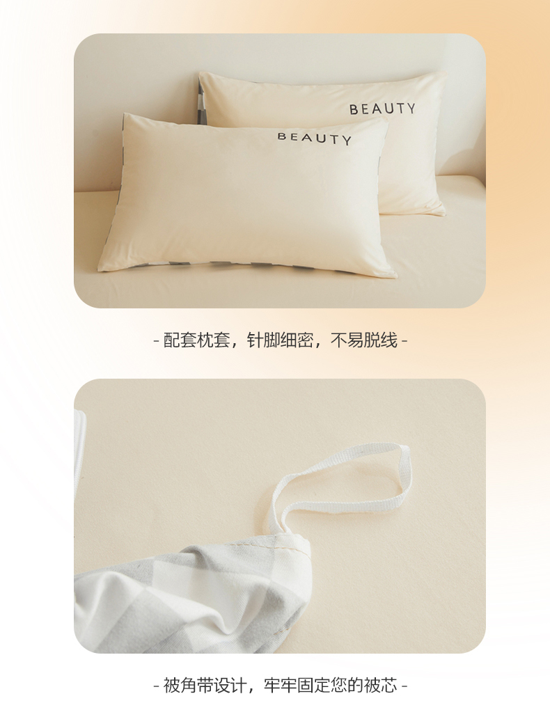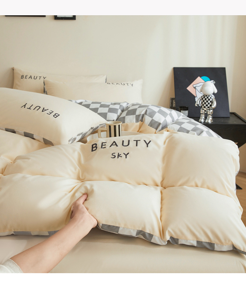 麦空家居 2025新款水洗棉刺绣四件套-布丁(棋盘格) 奶昔白
