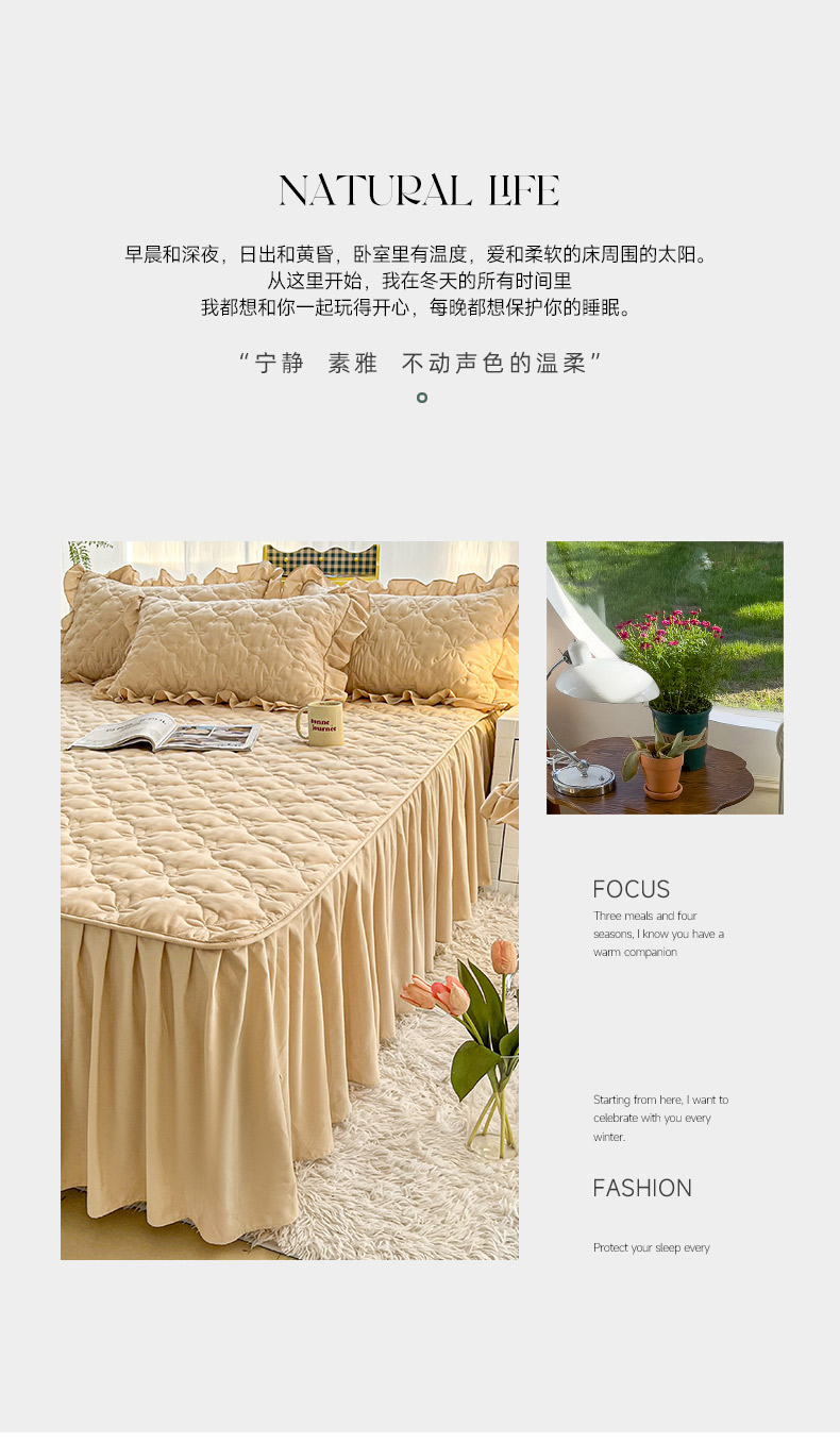 商品名称:(总)鼎丰家纺 2025新款纯色高克重水洗棉夹棉床裙-曼可