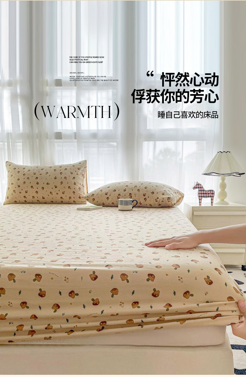 鼎丰家纺 2025新款90克超柔软糯印花单床笠系列 小蘑菇