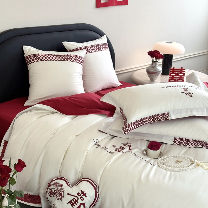 江涞 2025新款长绒棉纯棉镂空刺绣四件套-欢喜 欢喜-白