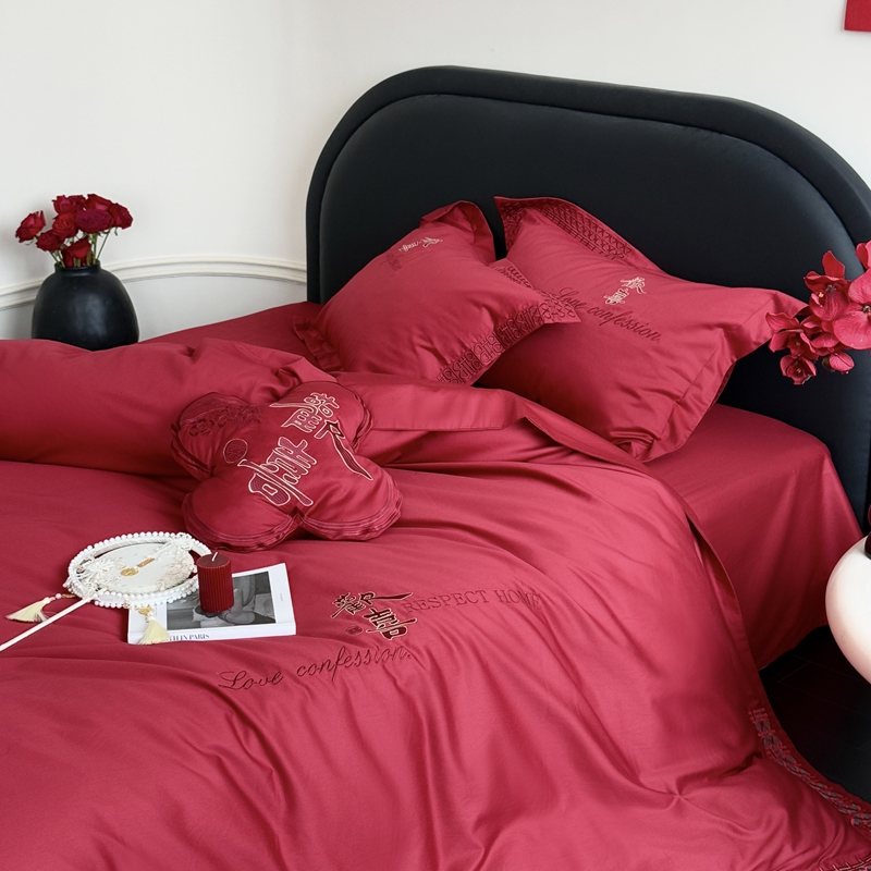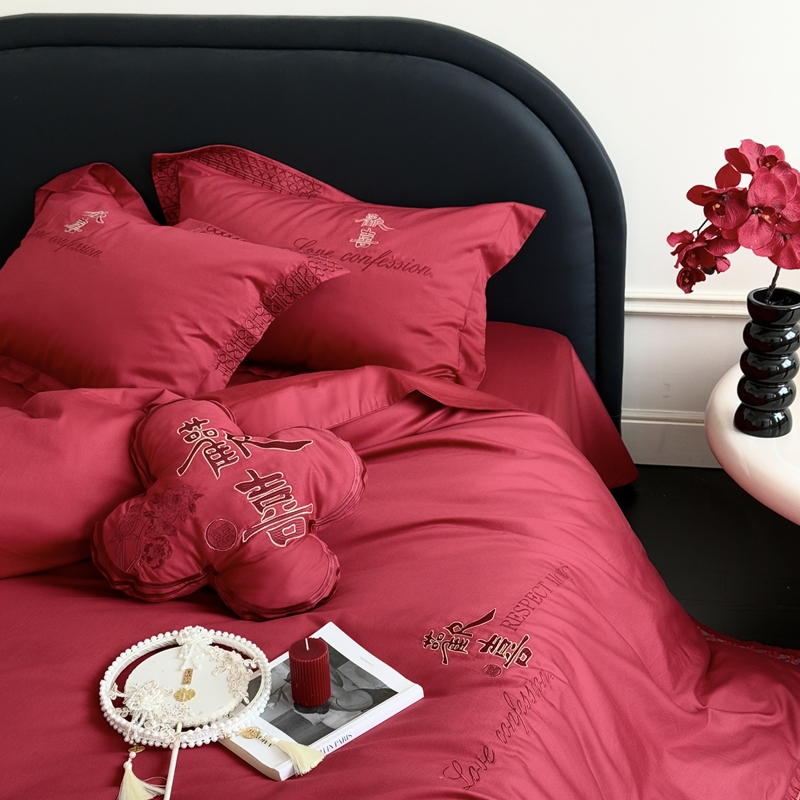 (总)江涞 2025新款高克重牛奶绒刺绣四件套-花月,花月-高级红