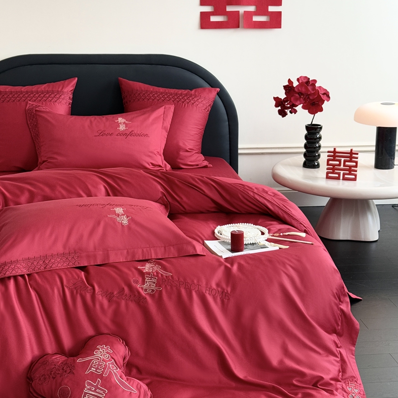 (总)江涞 2026新款100支长绒棉进口高端刺绣可摘卸流苏四件套-迎喜(淘宝券后不低于 418/438),迎喜