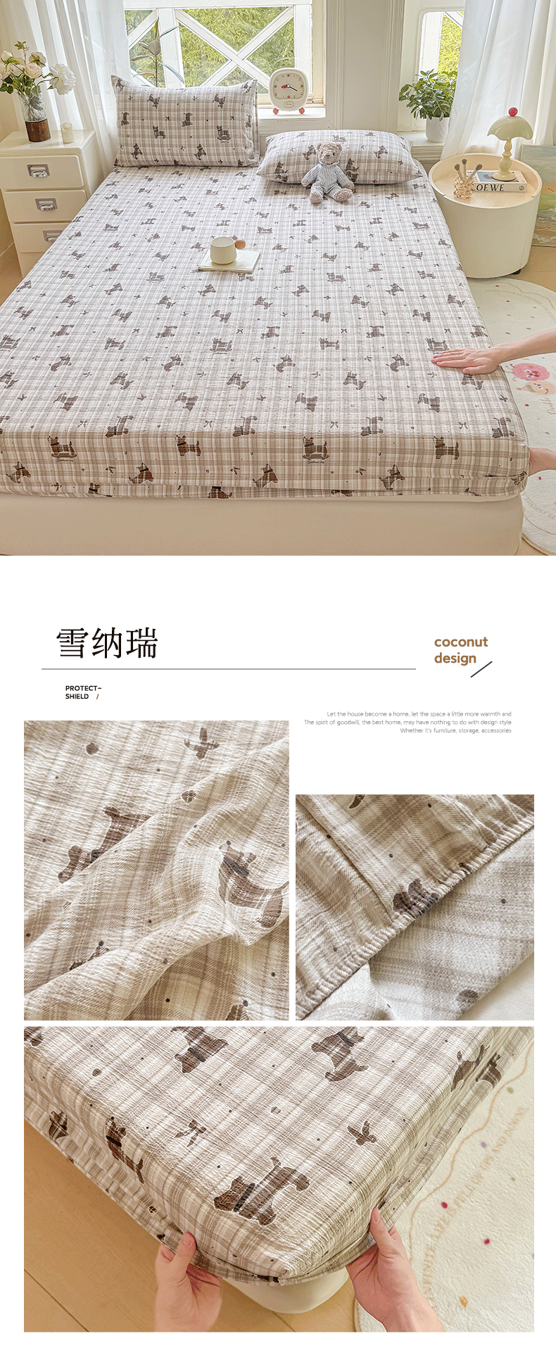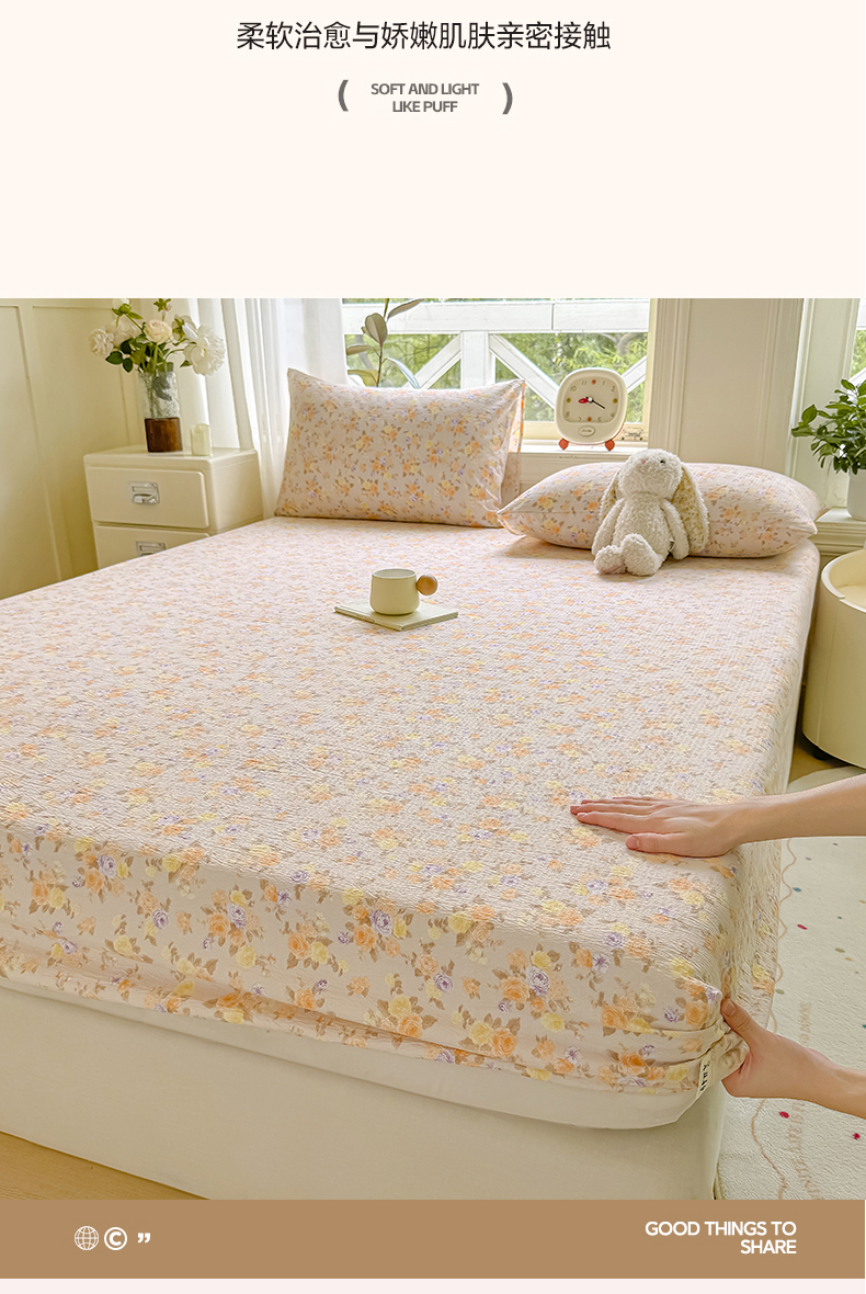 商品名称:(总)丝芙妮家居(原乐视家纺) 2026新款A类皱皱纱亲肤木棉床笠-系列二
