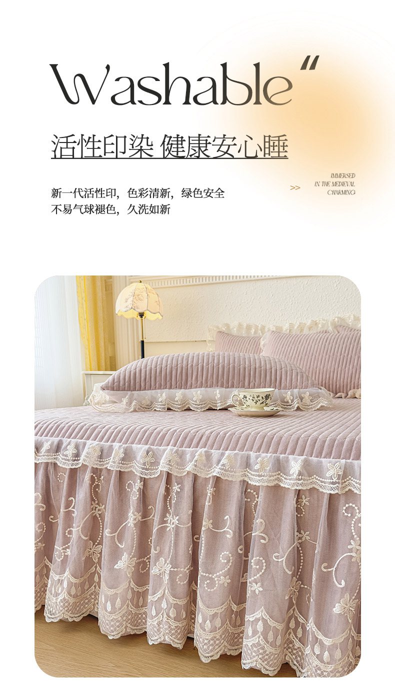 (总)鼎丰家纺 2025新款皱皱纱夹棉床裙三件套-花影系列,花影-豆沙,花影-浅蓝,花影-浅米,花影-浅玉,花影-清新绿,花影-樱花粉