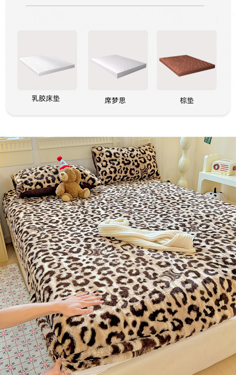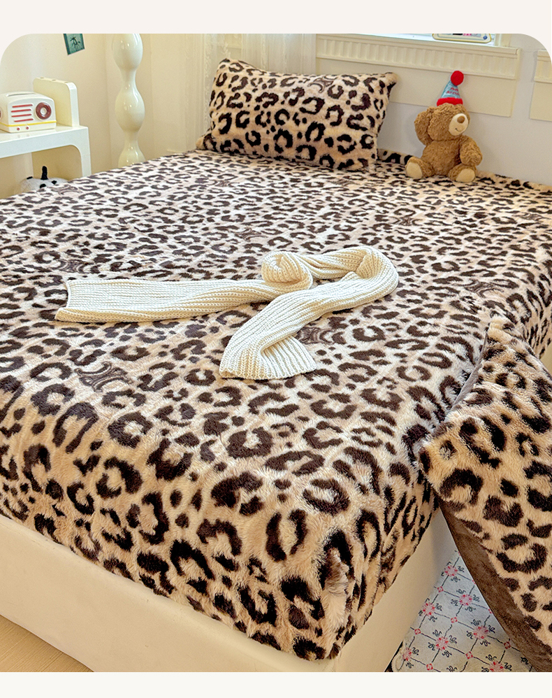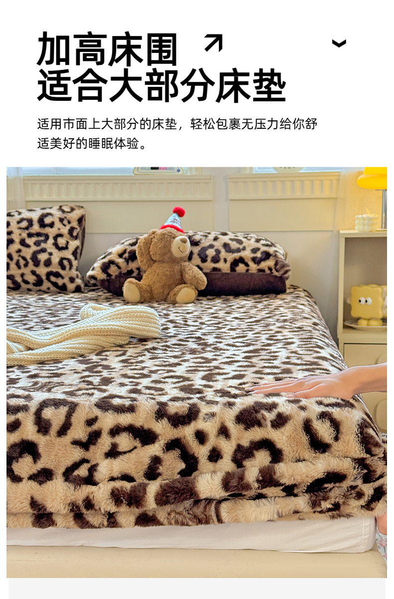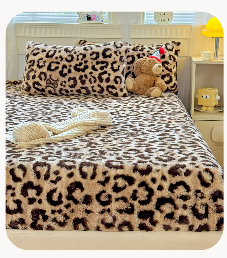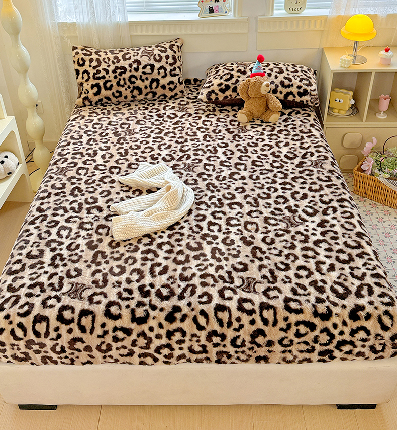 商品名称:2025新品兔毛印花单床笠 床笠-豹纹咖