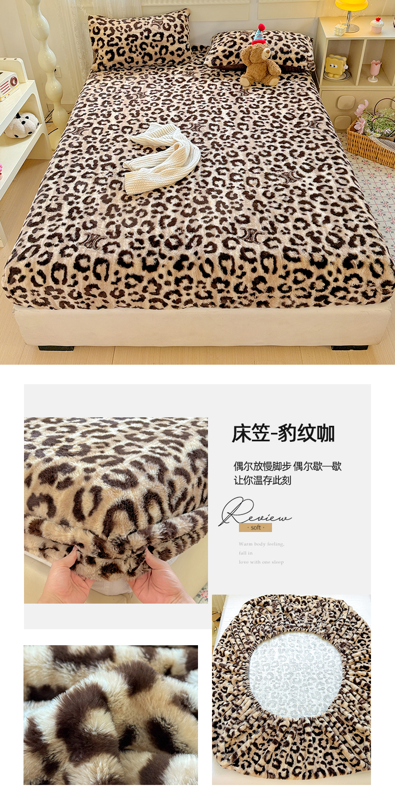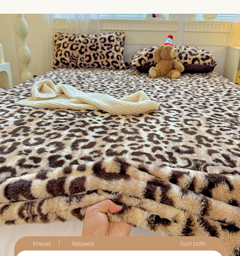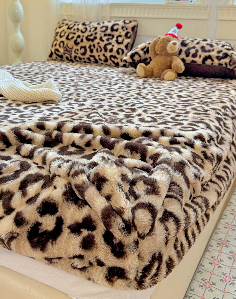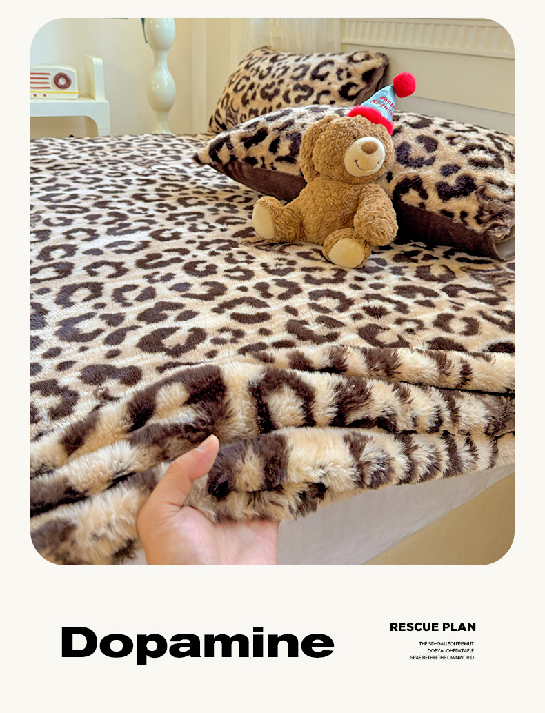 商品名称:2025新品兔毛印花单床笠 床笠-豹纹咖