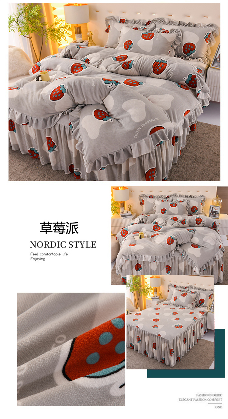 商品名称:(总)睡美人 2025新款韩版印花牛奶绒床裙款四件套