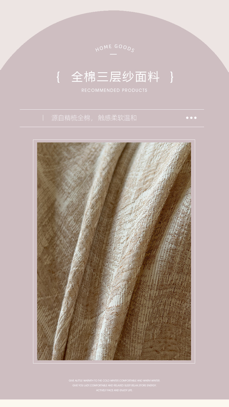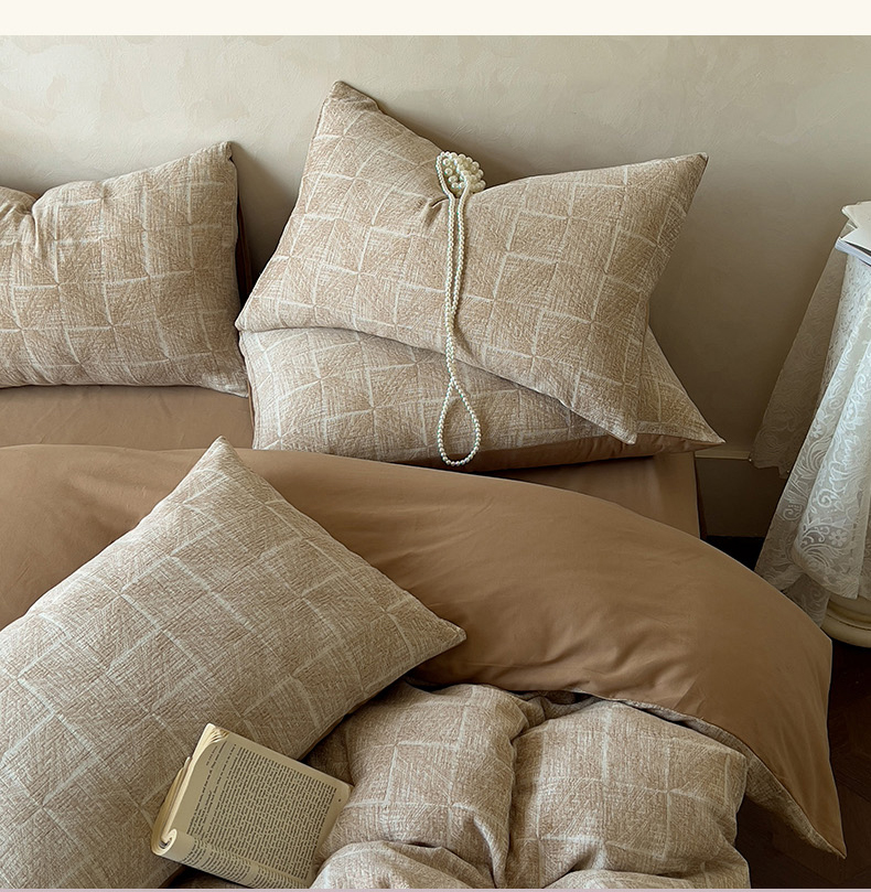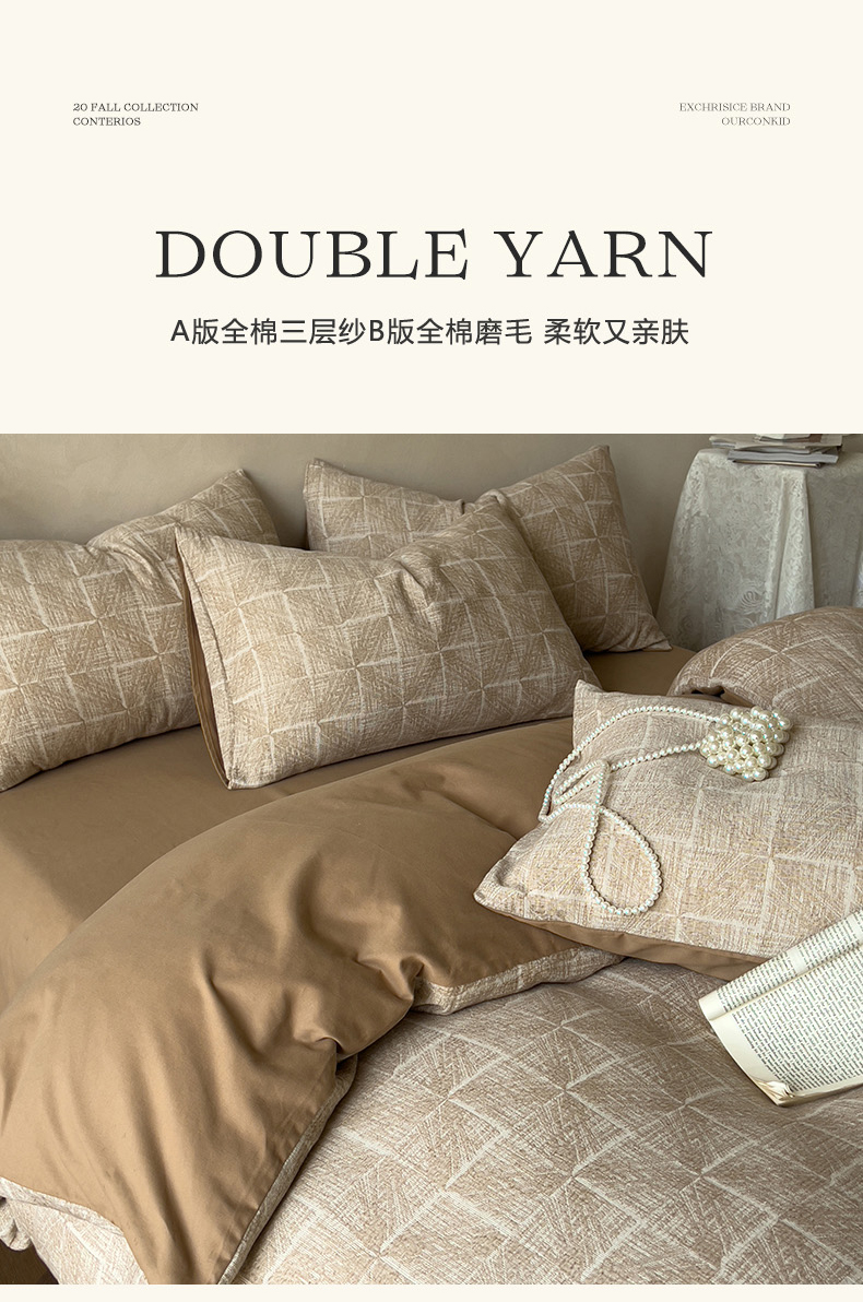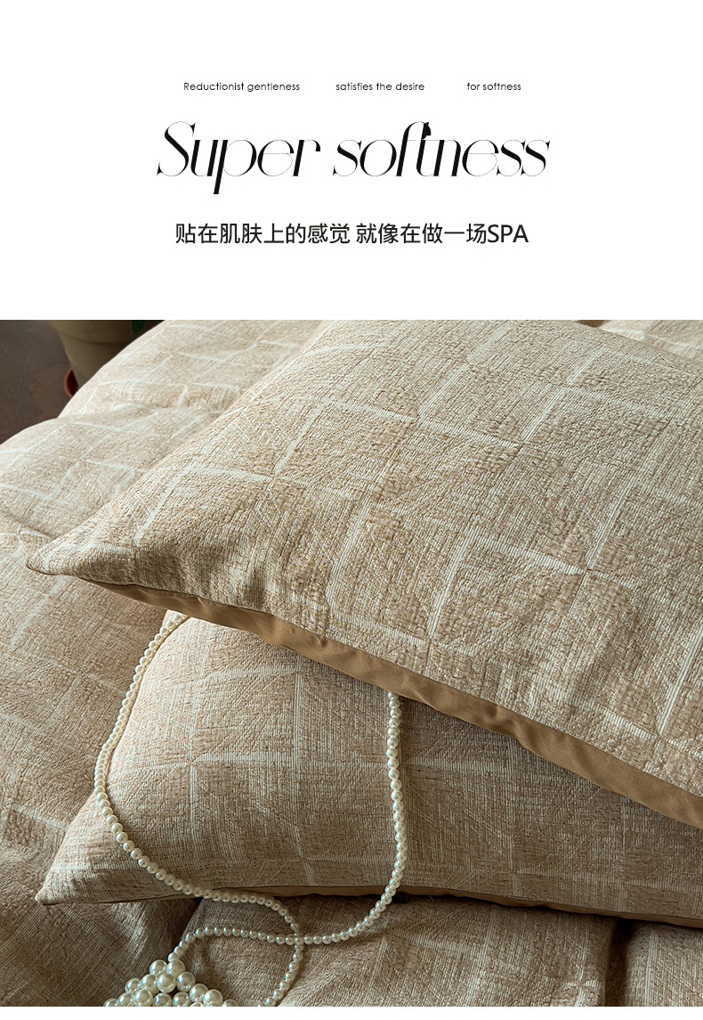 商品名称:田野 2025新款全棉三层纱提花磨毛系列四件套 苏珊格-卡其