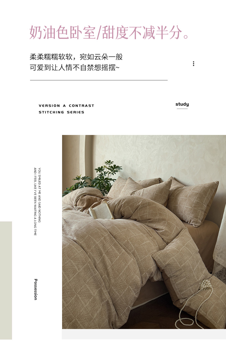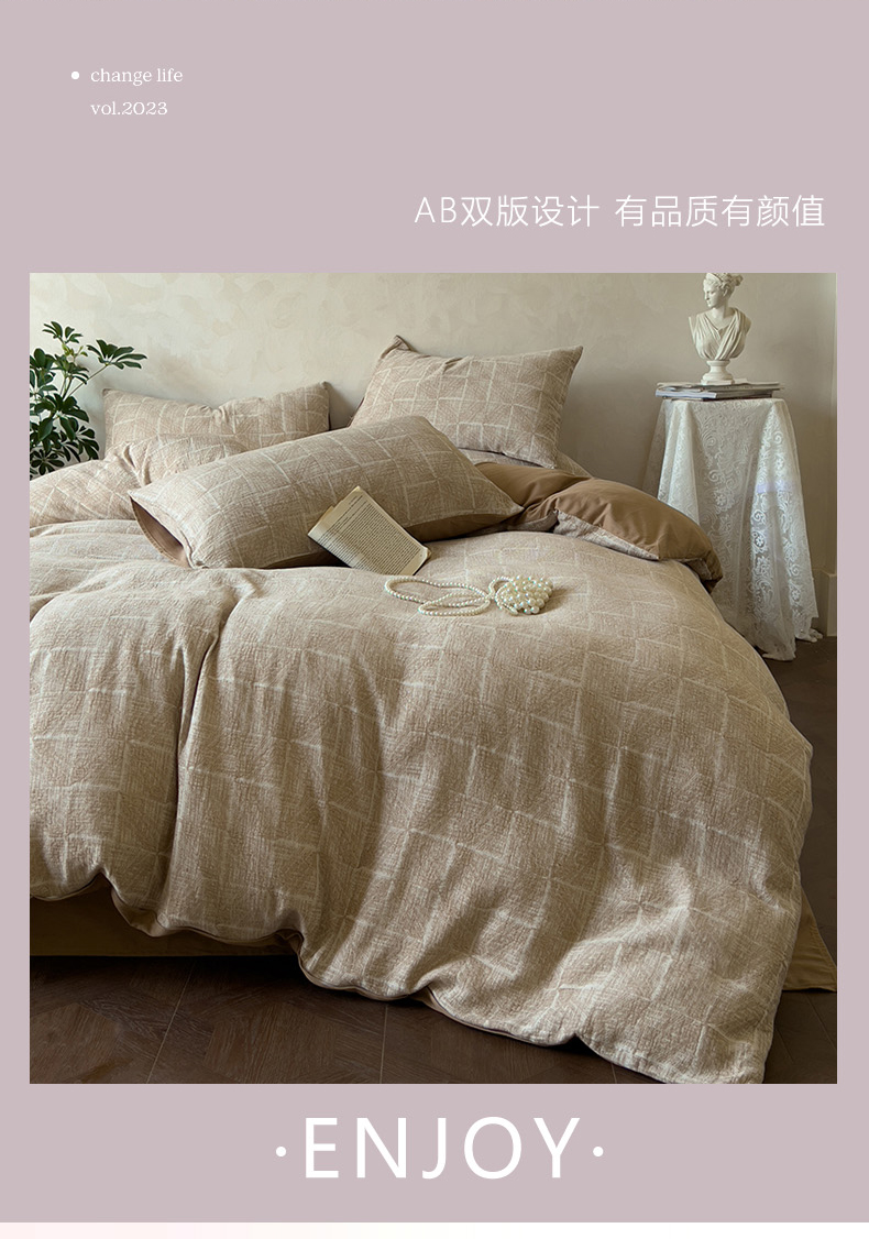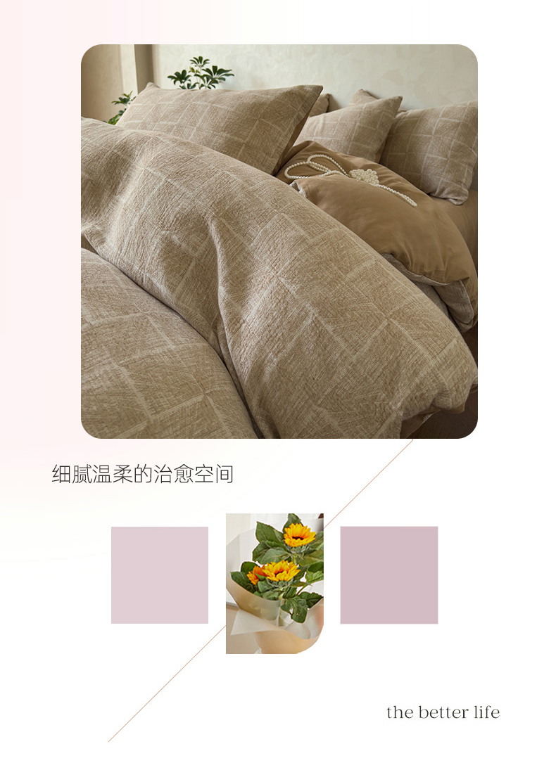 (总)田野2025新款全棉皱皱纱四件套,半夏-粉,半夏-蓝,时予-黄灰,时予-灰绿,时予-桔兰,小半-粉米,小半-绿紫,小半-奶茶棕,小半-亚麻棕