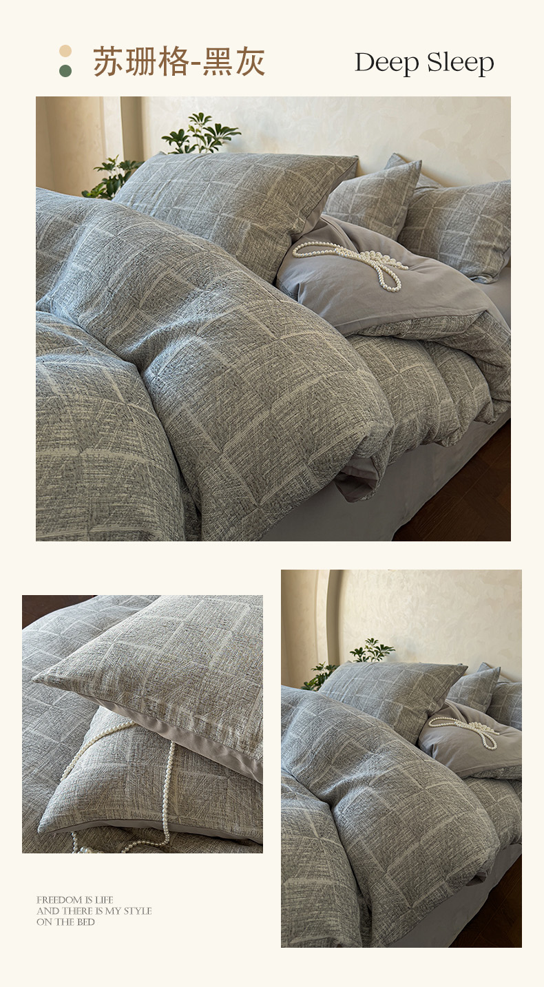 (总)田野 2025新款全棉三层纱提花磨毛系列四件套,花影如诗,梦境之翼-粉,浪漫花韵-绿,浪漫花韵-棕红,苏珊格-黑灰,苏珊格-卡其,叶芷梦-灰,棕榈韵致-卡其,棕榈韵致-绿