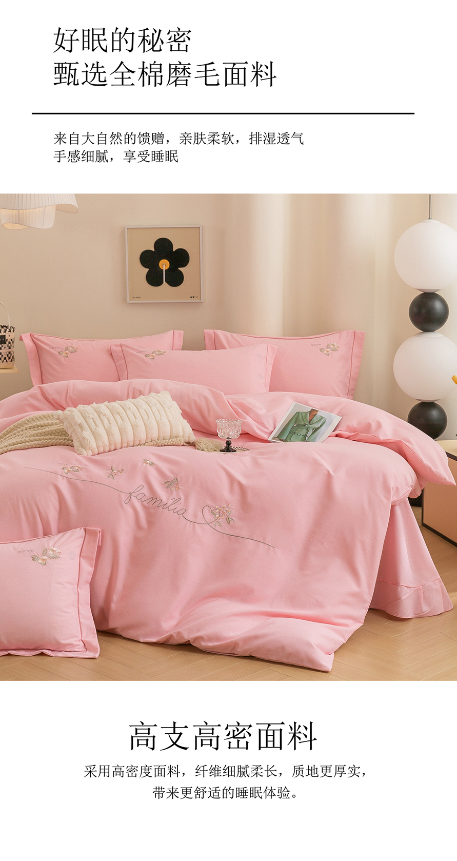 商品名称:绒博士 2025新款全棉磨毛绣花四件套--依恋系列 依恋-粉色