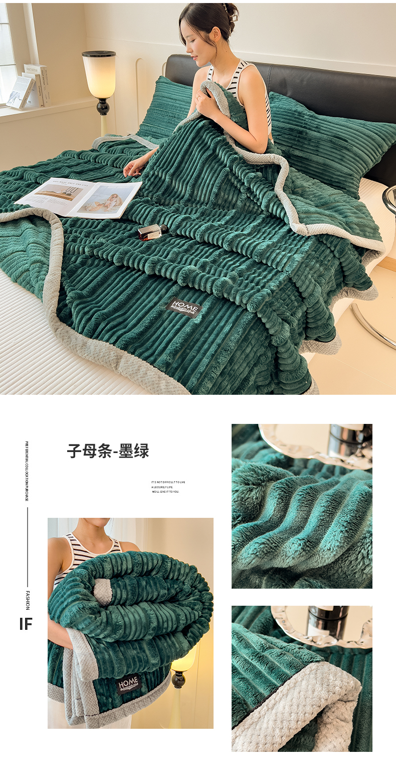 商品名称:欧邦 2025新款子母条灰边毛毯毯子多功能盖毯 子母条-草绿灰边