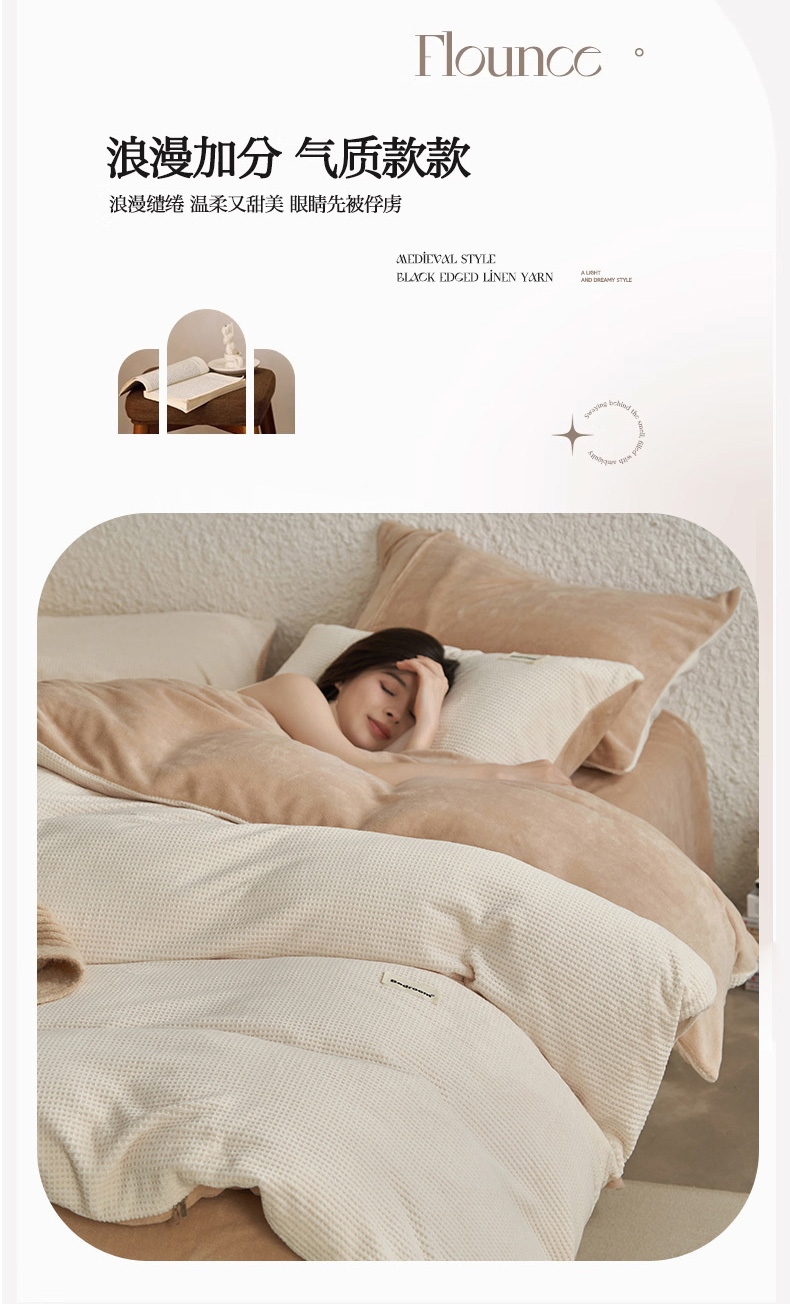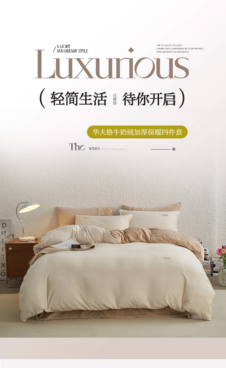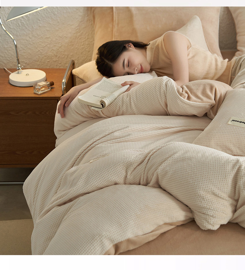 (总)眠博士 2025新款华夫格剪花牛奶绒加厚保暖四件套