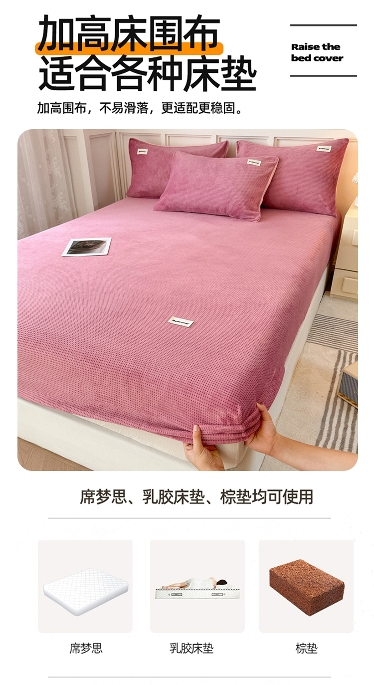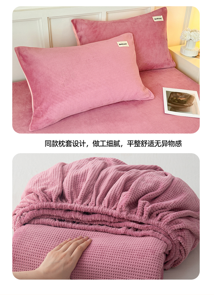 • 91家纺网 家纺一手货源 找家纺 眠博士 2025新款A类华夫格剪花牛奶绒床笠 剪花床笠-豆沙