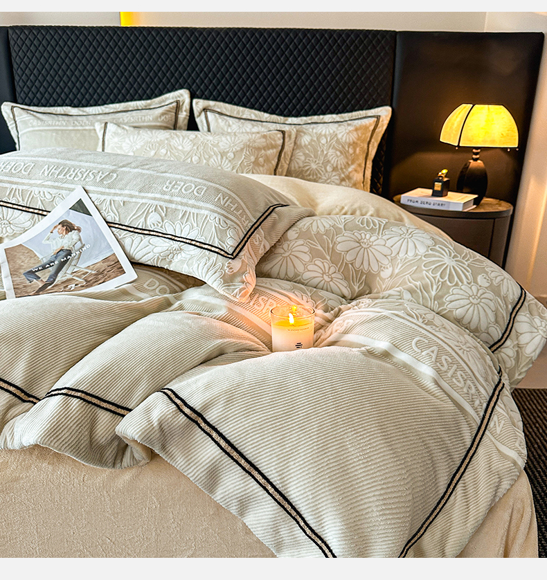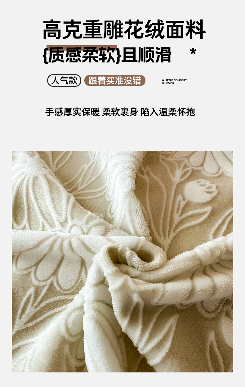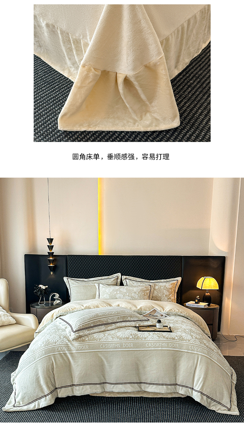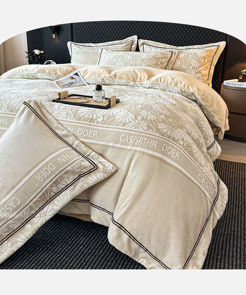 (总)诺梵家纺 2025新款兔毛绒包边 雕花绒四件套,梵花-米白,梵花-紫金,花魅-咖,青黛,苏乡,栖春山,杏坞-黄