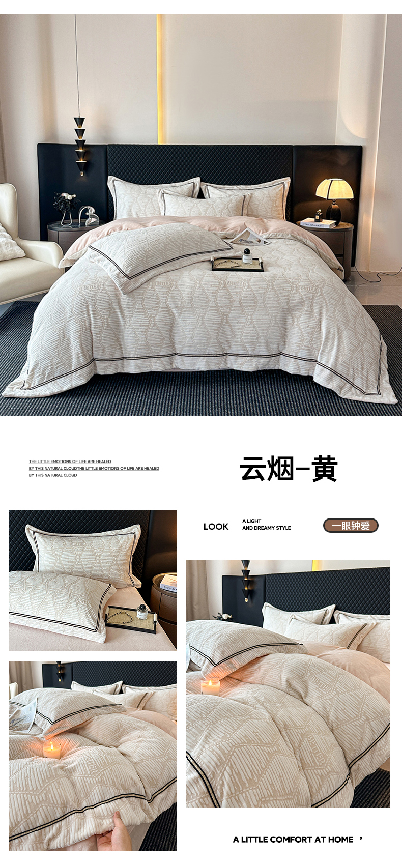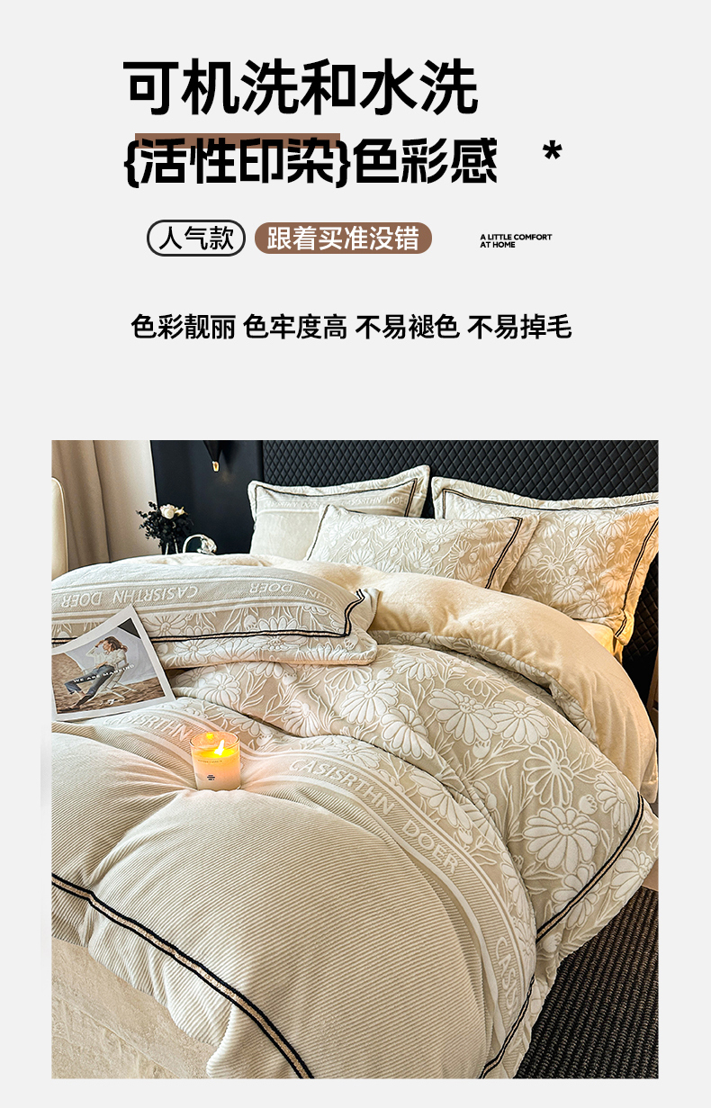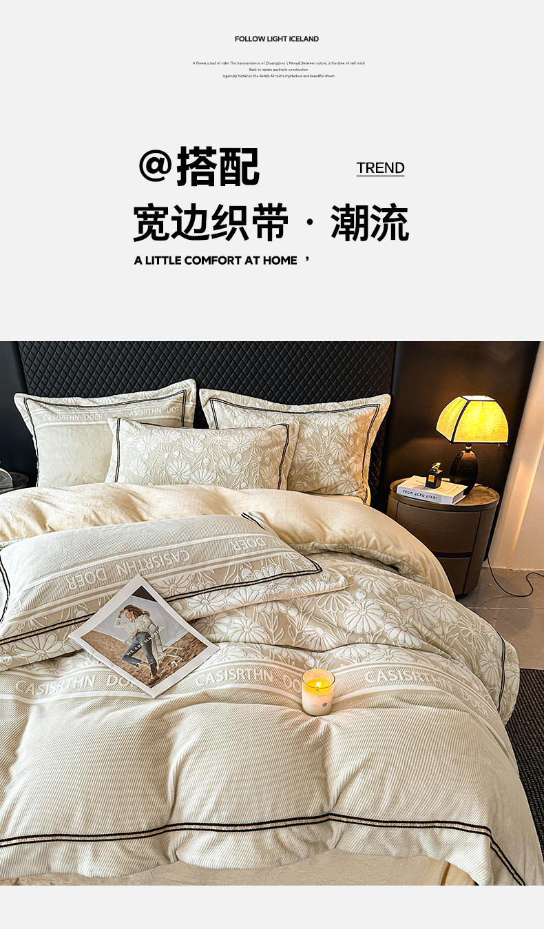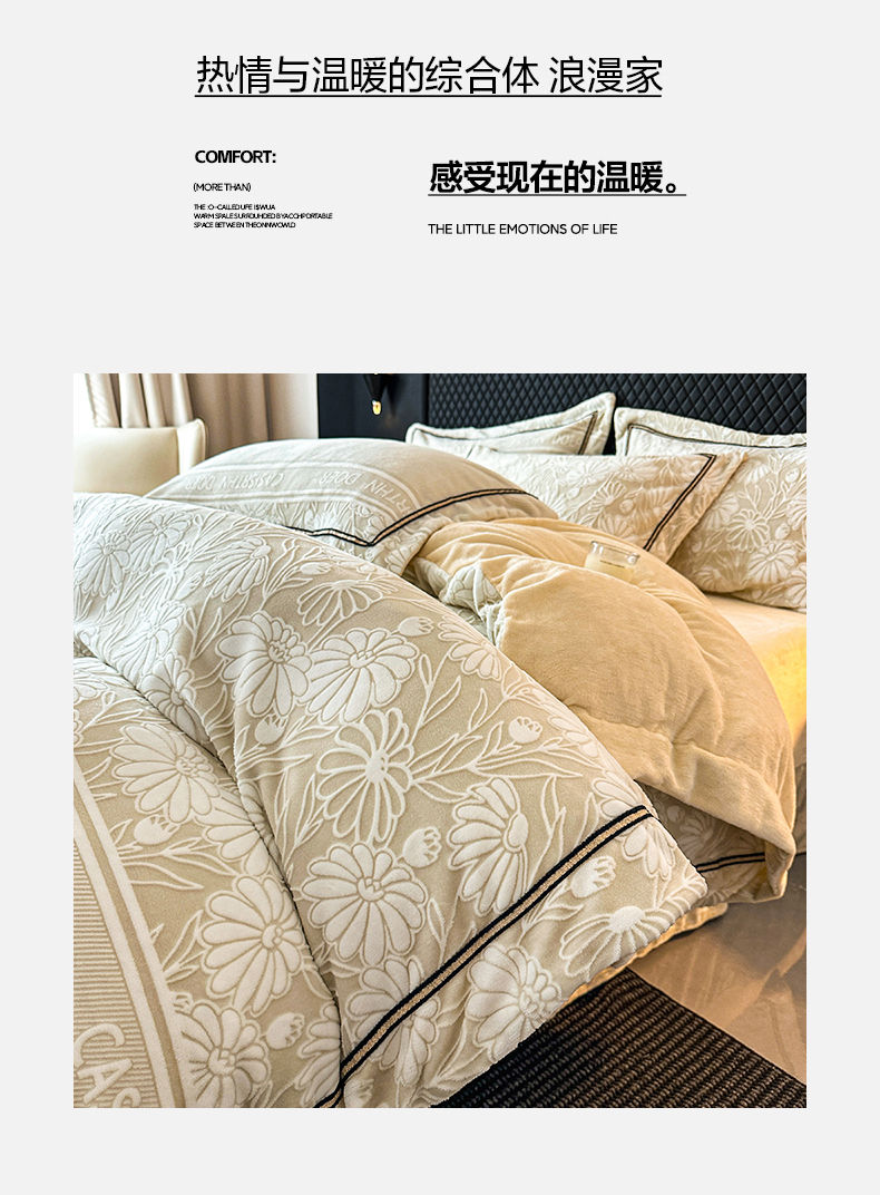 (总)诺梵家纺 2025新款兔毛绒包边 雕花绒四件套,梵花-米白,梵花-紫金,花魅-咖,青黛,苏乡,栖春山,杏坞-黄