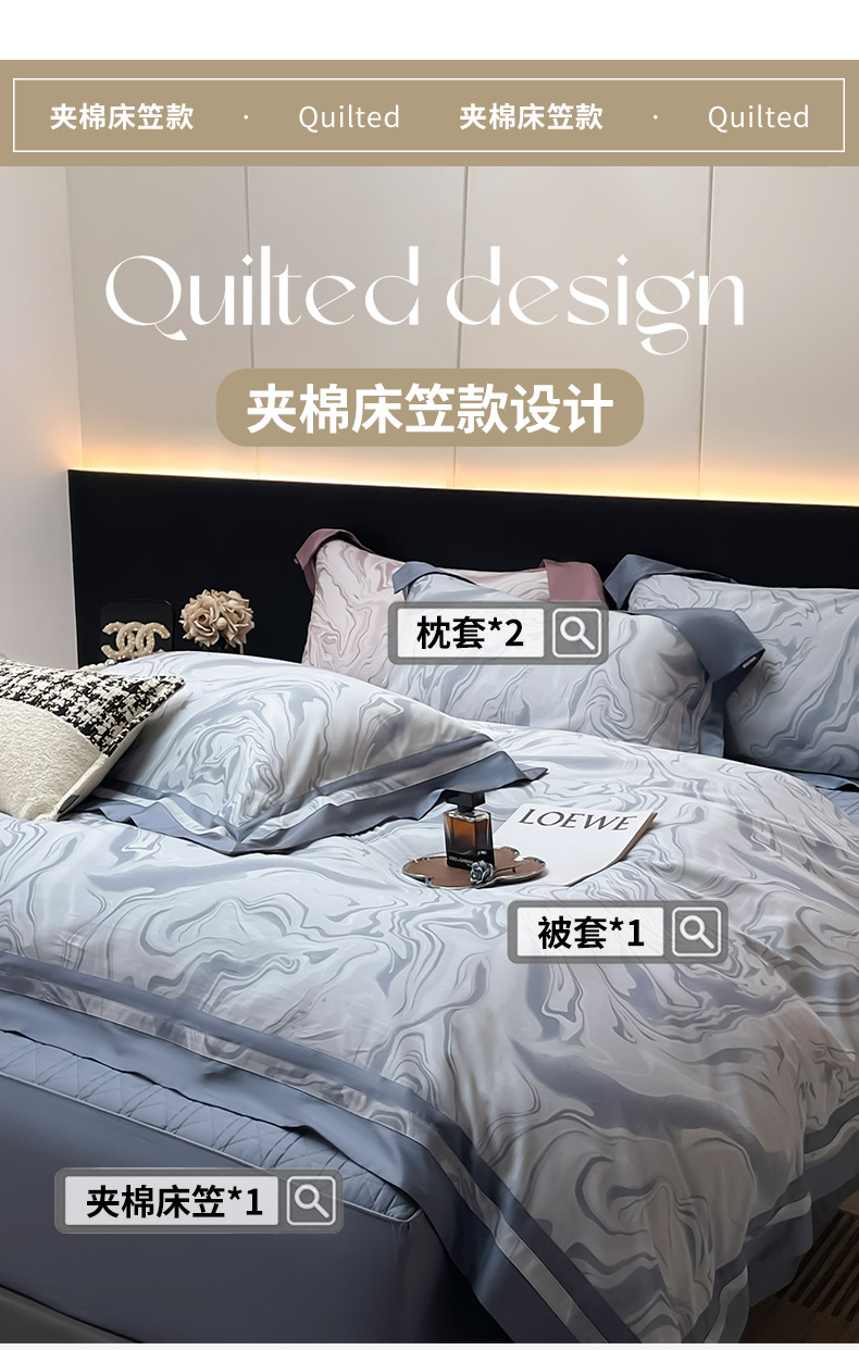 商品名称:2025新款高端A类长绒棉夹棉床盖床笠四件套全棉纯棉纯色绗绣四季款保护罩高级感床上用品 时漫-雾都蓝
