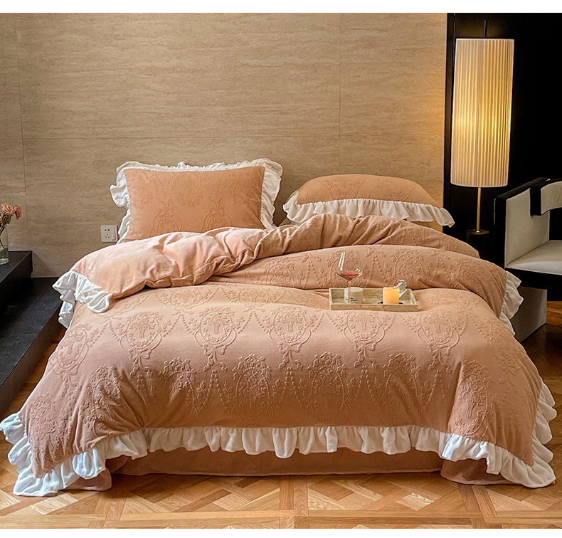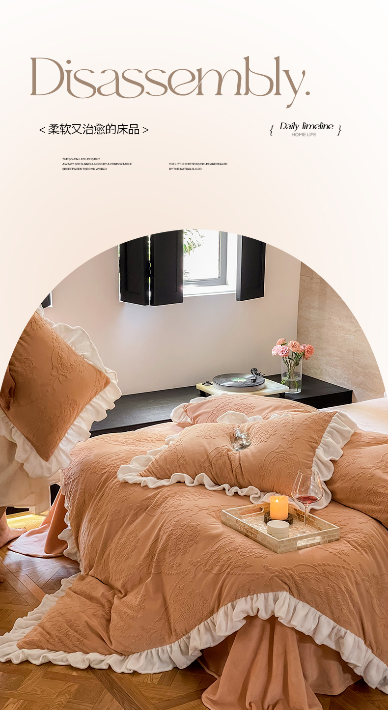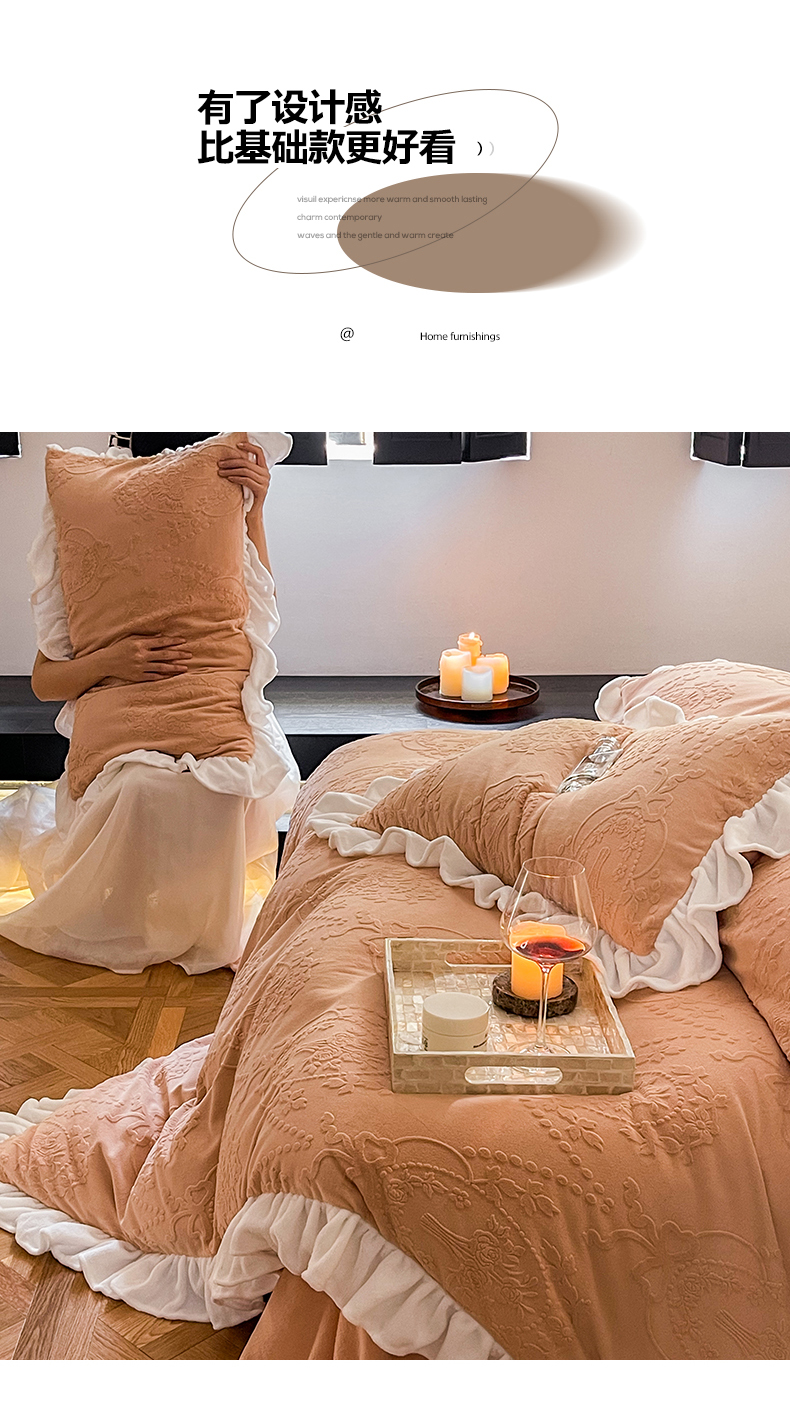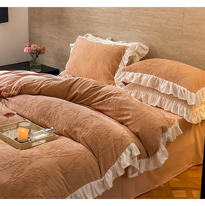 当前位置: 91家纺网 > 商品网购 > 床品套件 > 四件套 > 牛奶绒四件套 > 六巷胡同 2025新款韩系手捧花轻法式花边款牛奶绒四件套-风格二 手捧花-咖
