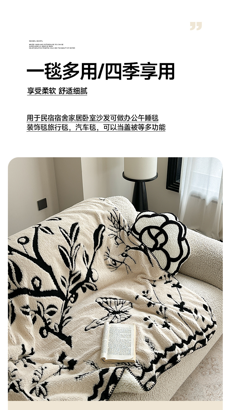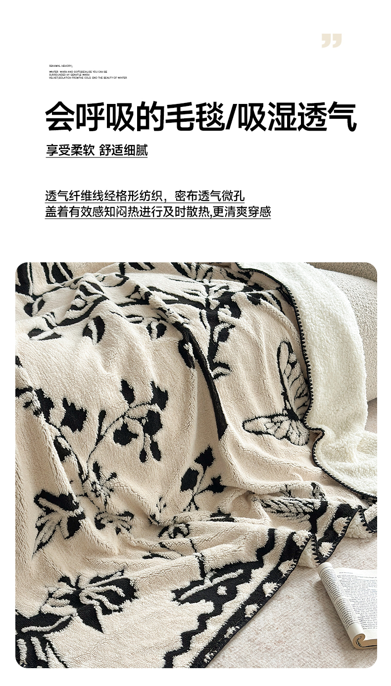 商品名称:繁花家居 2025新款阳离子羊羔绒毛毯毯子 幻蝶花韵